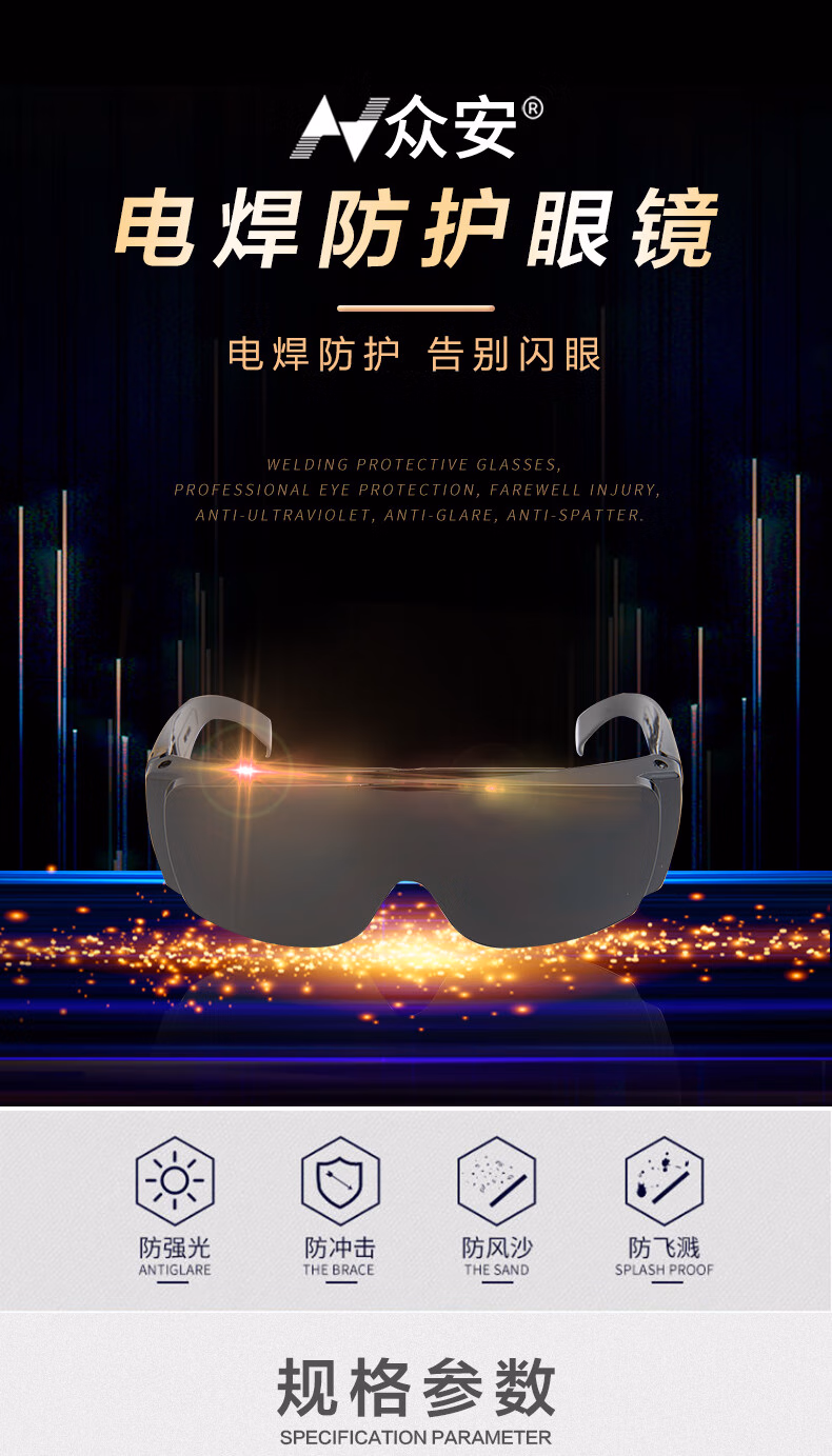 > 众安 焊工专用电焊眼镜烧焊防强光防飞溅防打眼护目镜 电焊眼镜11号色(很黑)