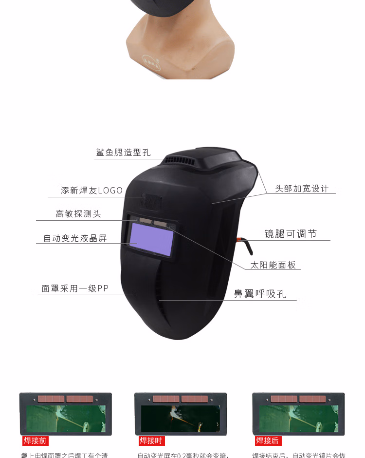 厚创 隔热电焊面罩烧焊氩弧焊焊工电焊眼镜面部防护面罩阻燃轻便 3个透明眼镜