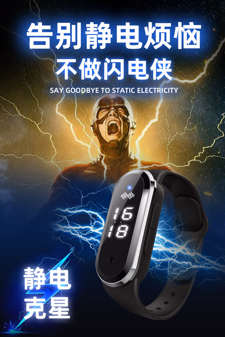 > 百舸(BAIGE)除静电手环 无线静电人体消除神器男女工业级全自动手环 哑光黑