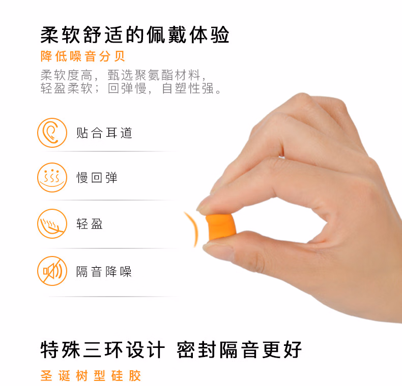 世达隔音耳塞防噪音吵闹打呼噜睡眠专用工厂工作专业消音降噪静音 FH0303/圣诞树型硅胶耳塞(不带线)-5副