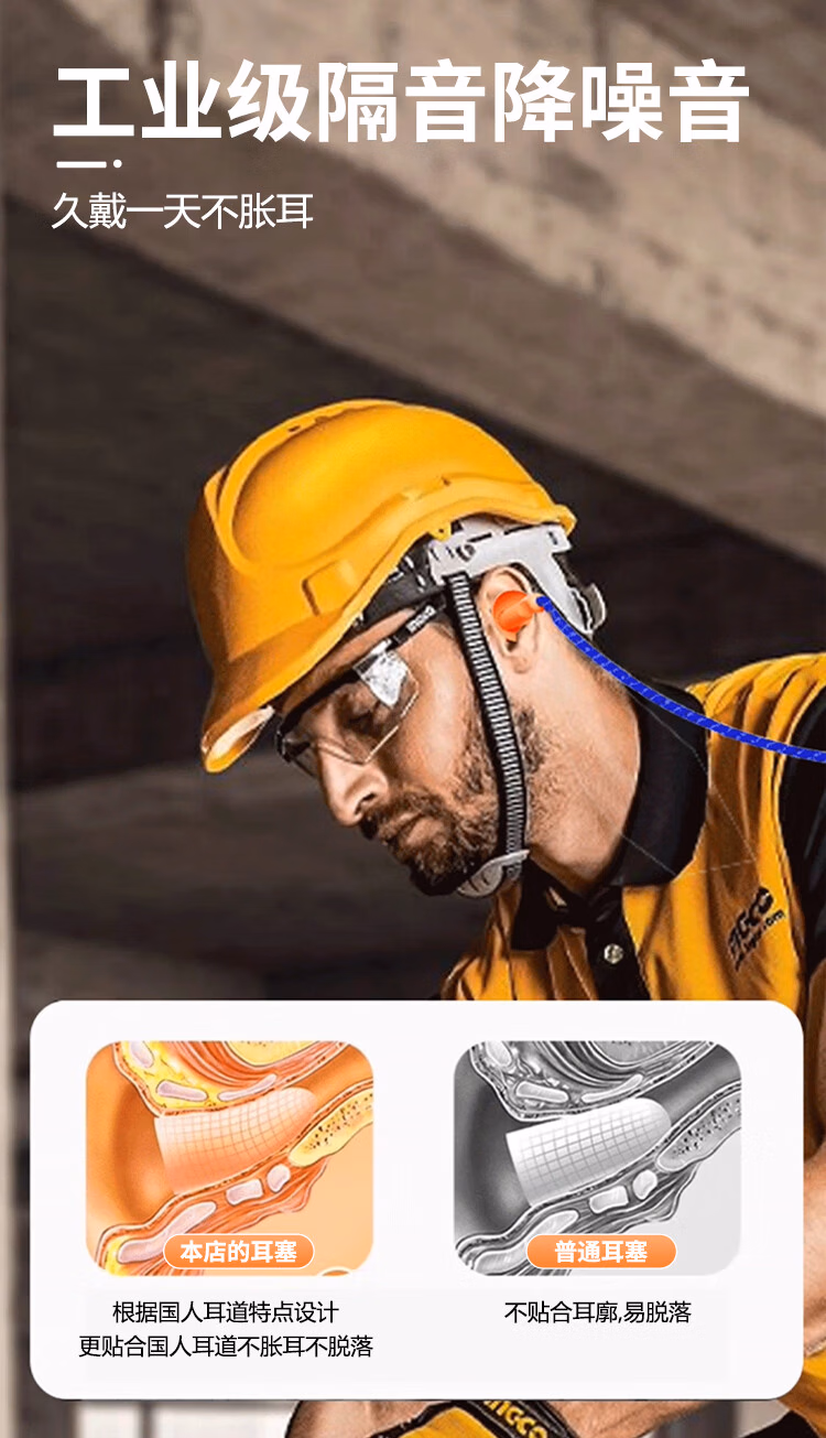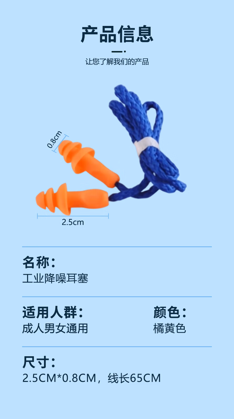 > 安达通 工业耳塞 防噪音工厂车间专用耳塞带线睡觉降噪舒适不伤耳 【次日达】1280型耳塞20对