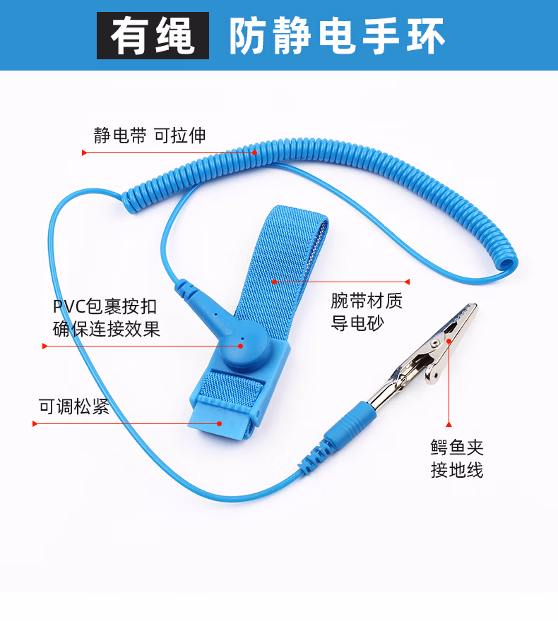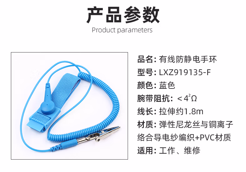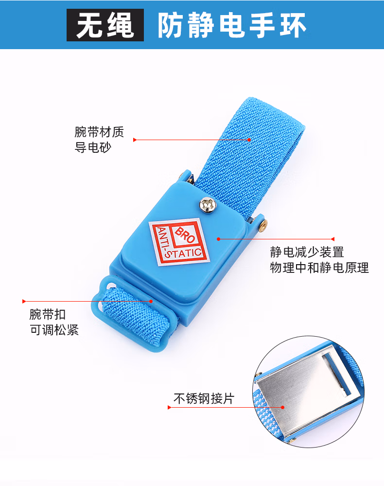 鸣固 防静电手环无线有线LEKO盒装人体去静电消除1.8米/10个KW716526