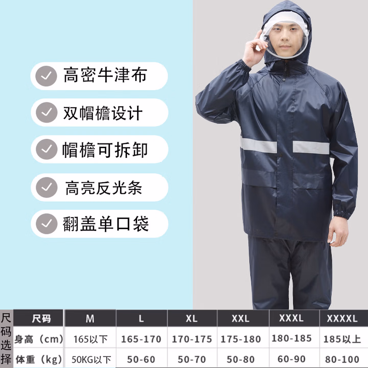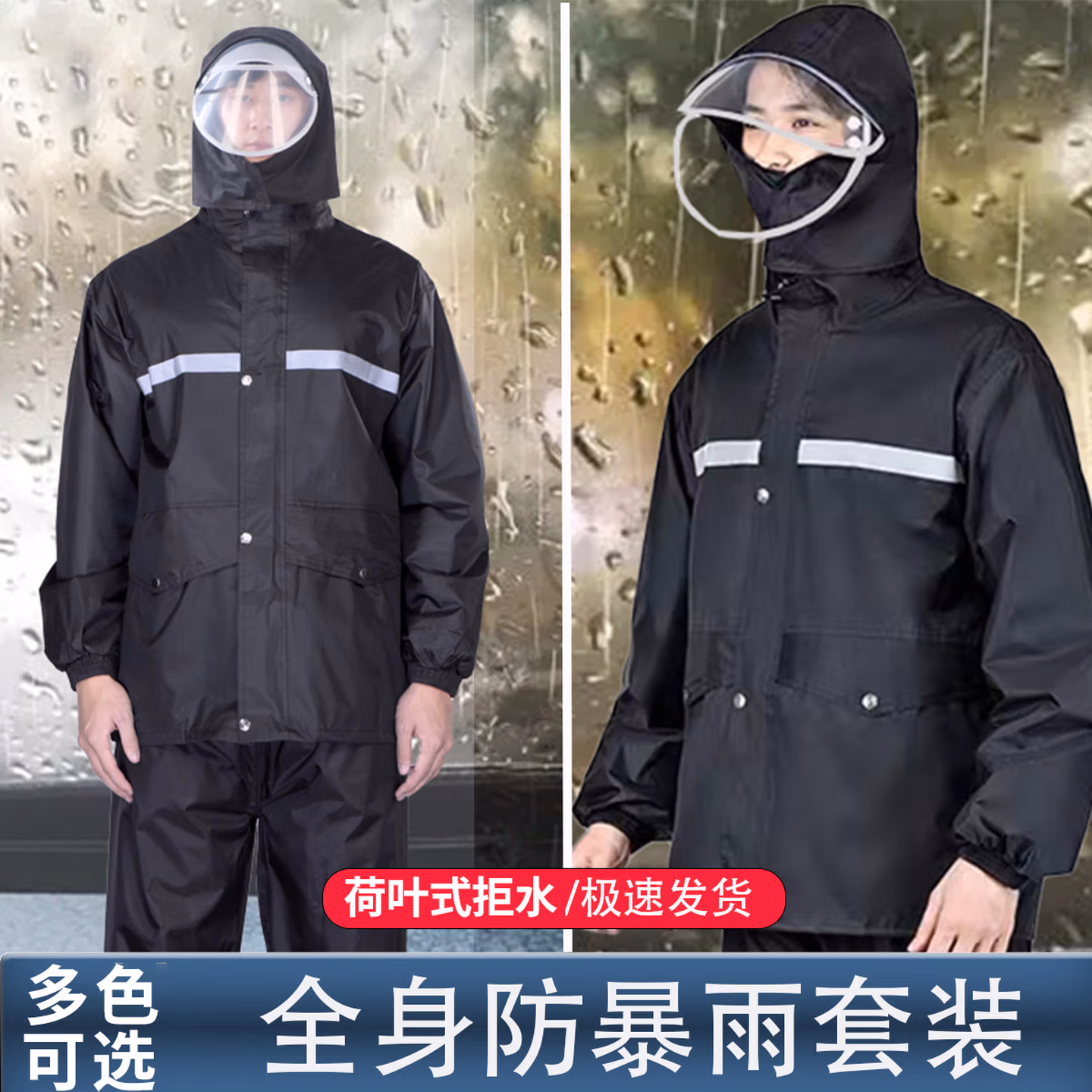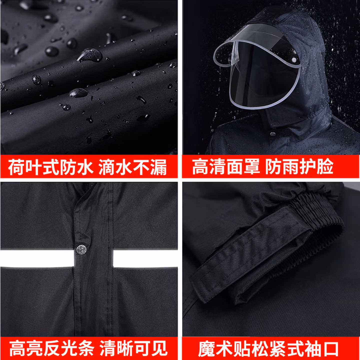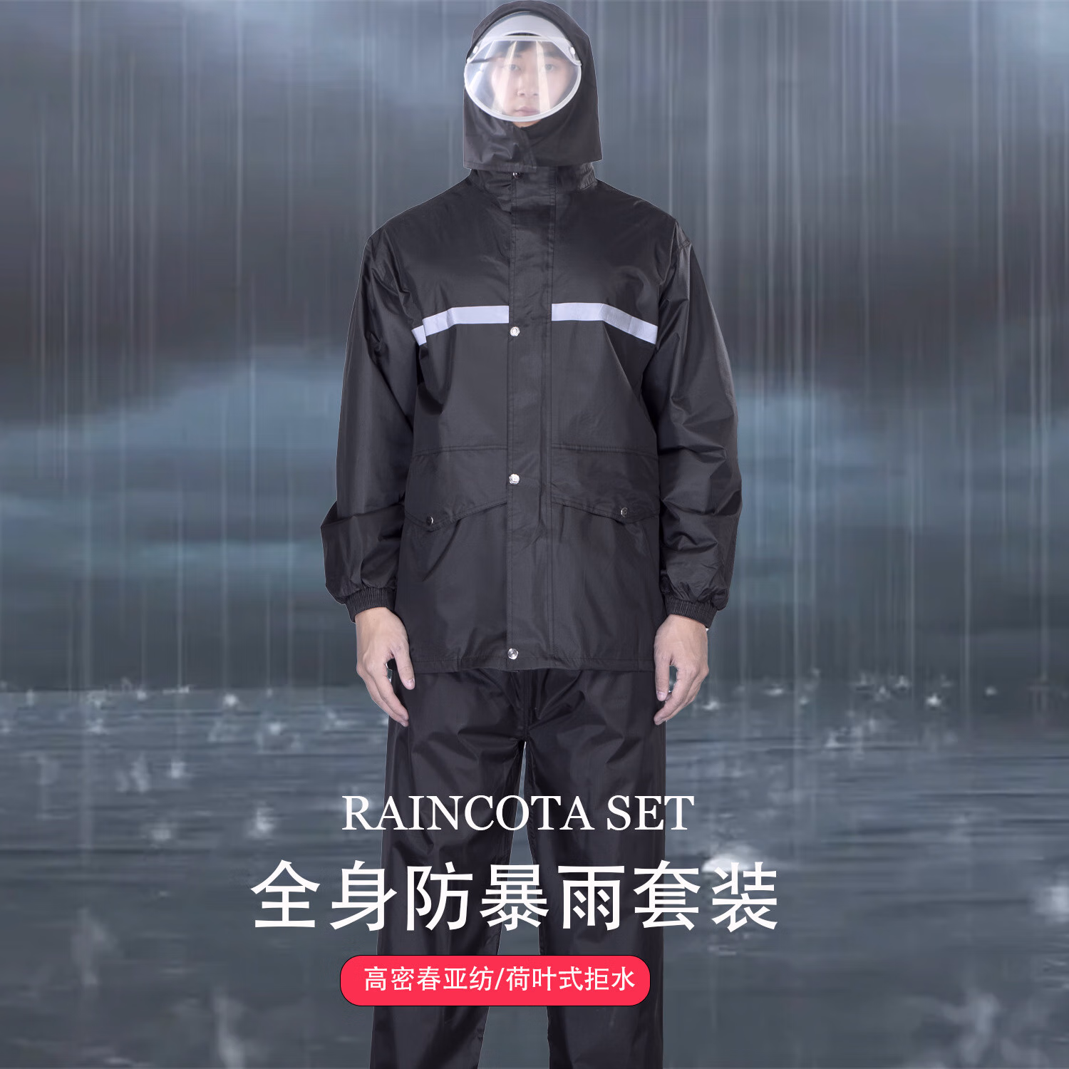 > 安达通 雨衣 防暴雨分体套装男女户外卖工地劳保反光雨披 常规款黑色 XL码