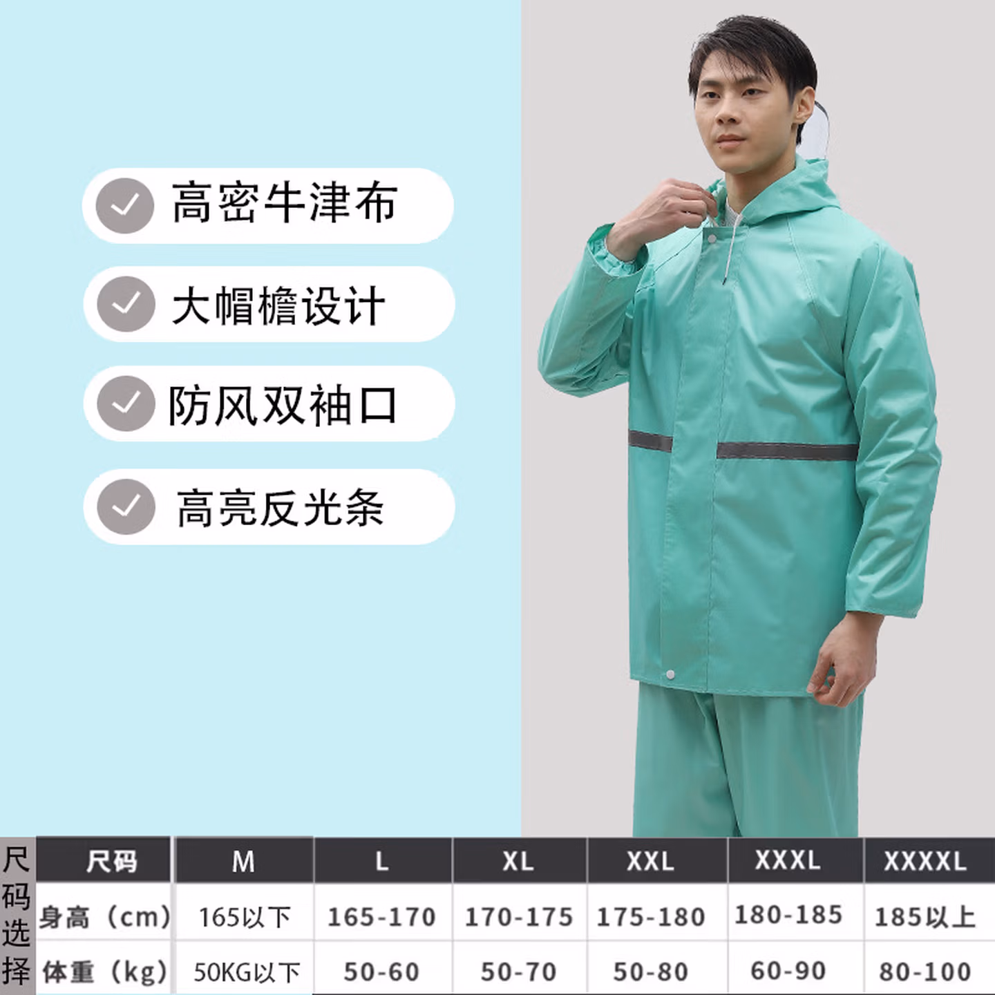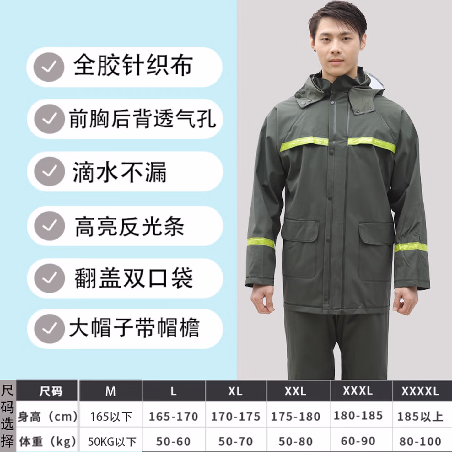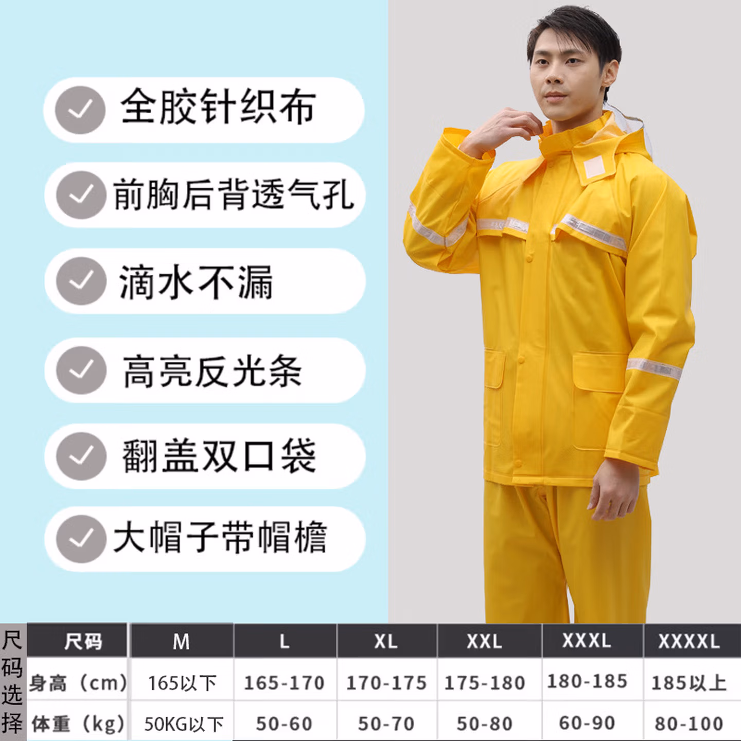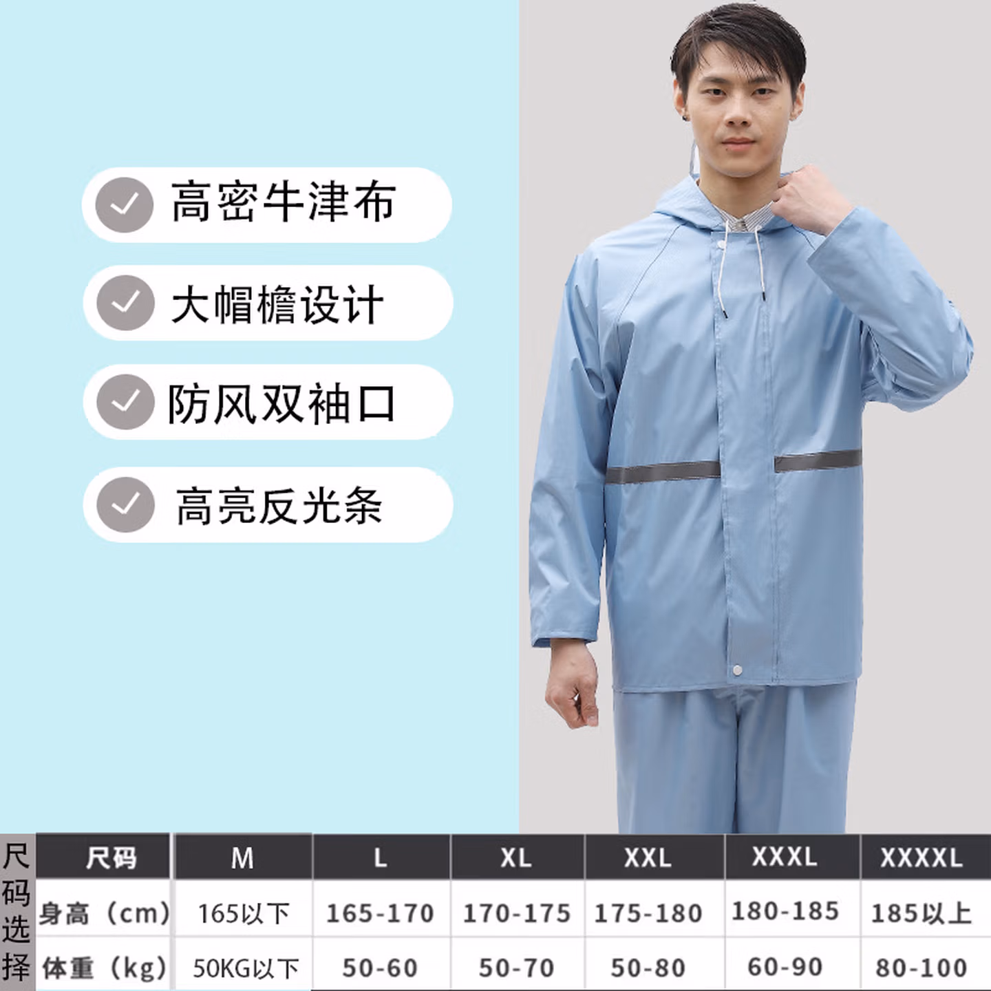 > 安达通 雨衣 防暴雨分体套装男女户外卖工地劳保反光雨披 常规款黑色 XL码