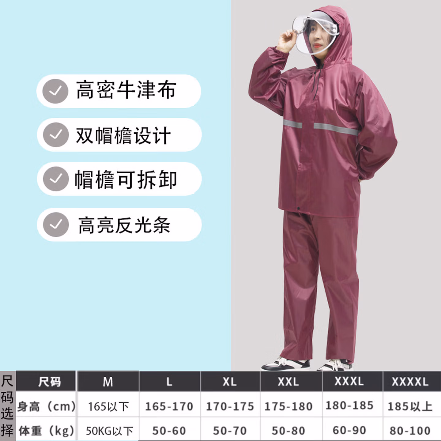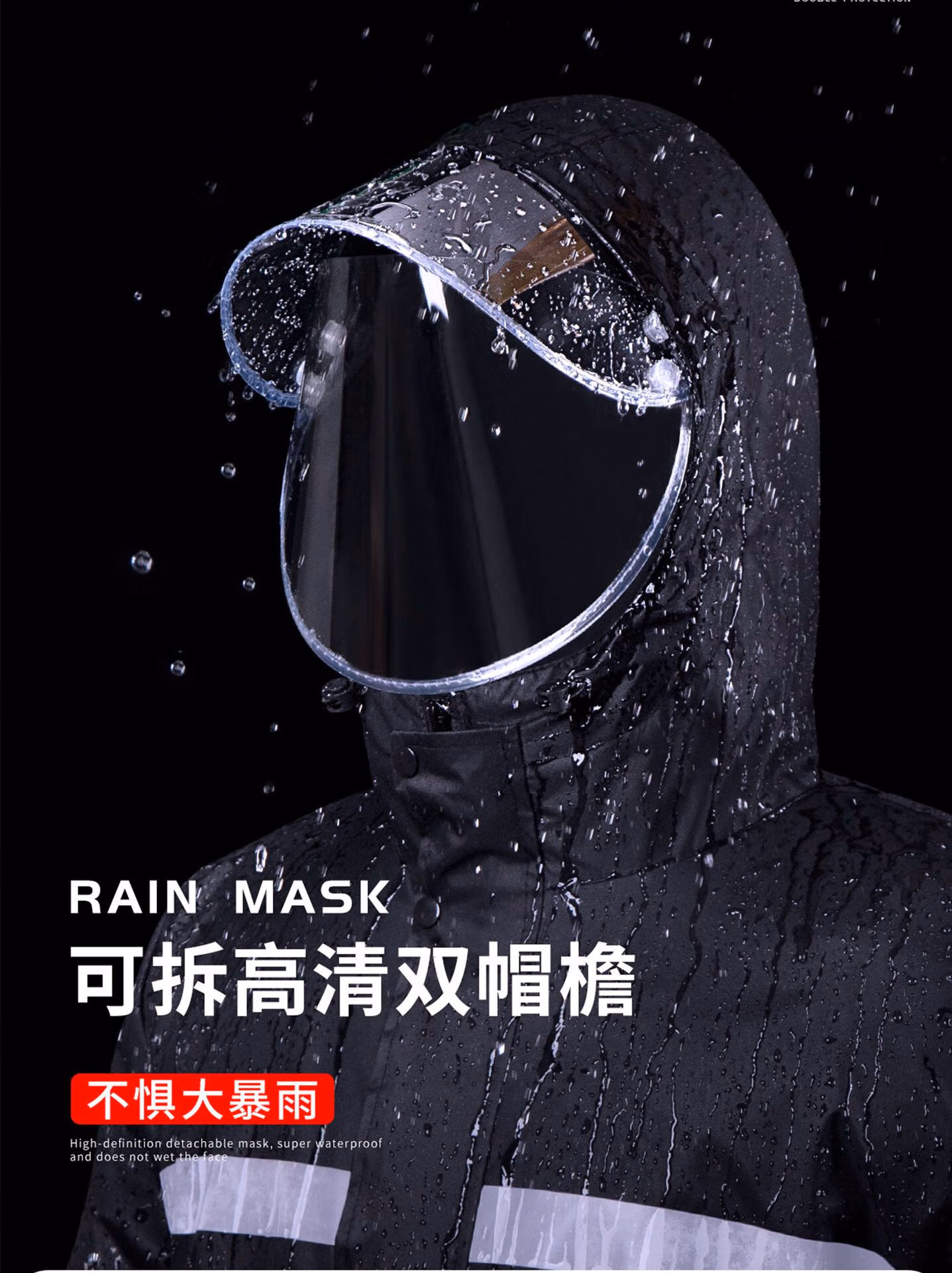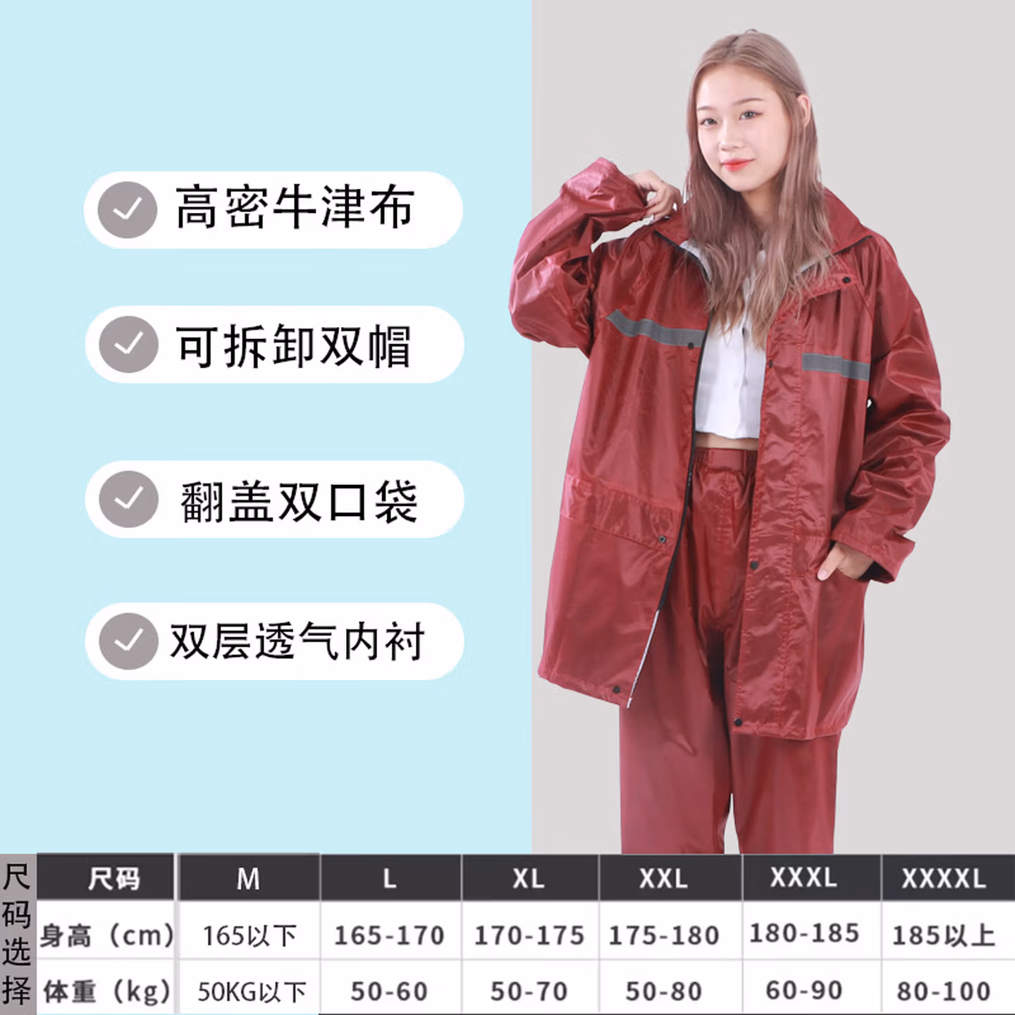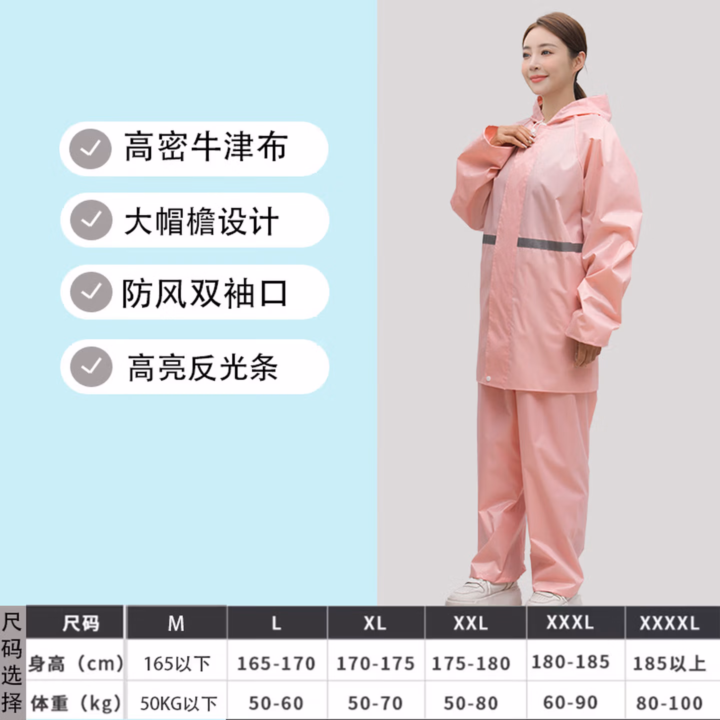 > 安达通 雨衣 防暴雨分体套装男女户外卖工地劳保反光雨披 常规款黑色 XL码