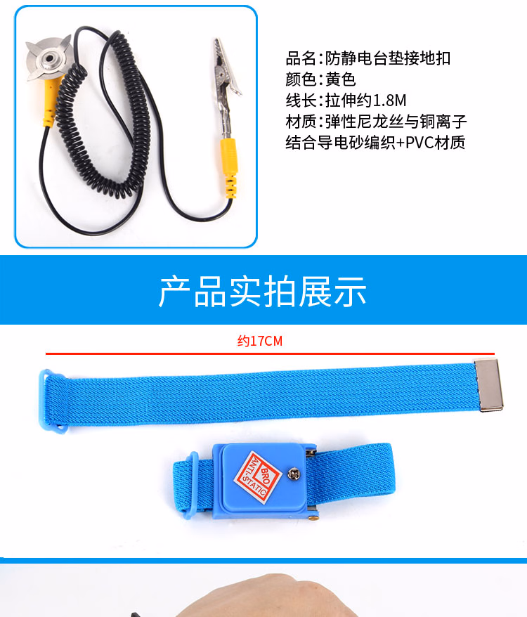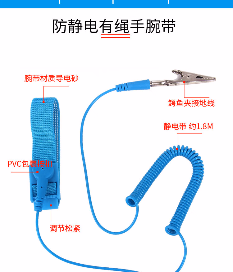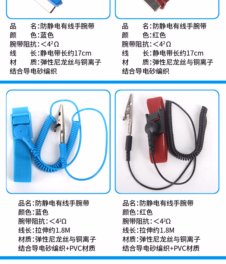 > 安达通 防静电手环 有线无线手环电子厂有绳金属手环 红色有线/1.8米pvc