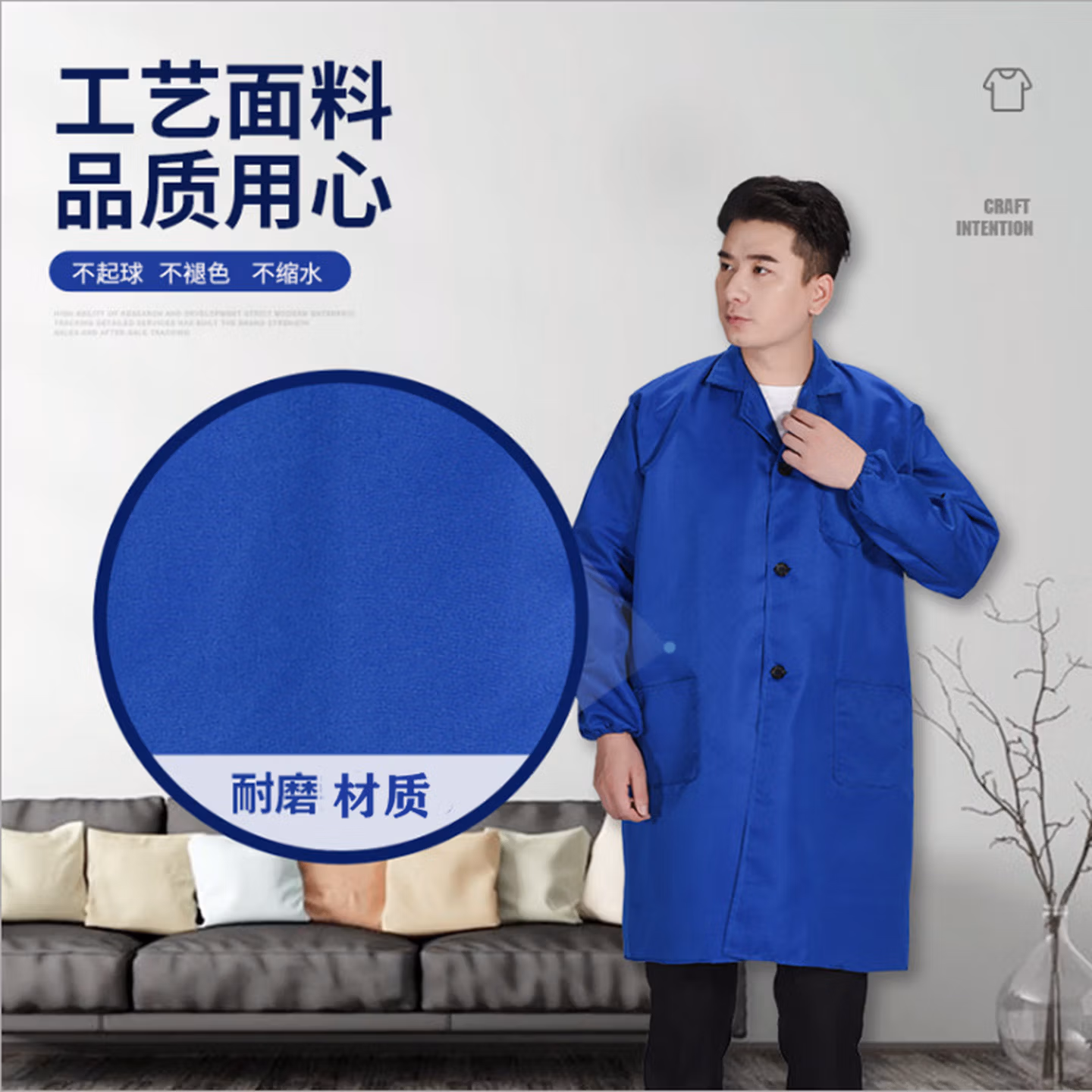 > 安达通 工作服男装 罩衣成人工作服劳保蓝大褂防尘耐脏冬夏实验服 剪刀迷彩 170-180
