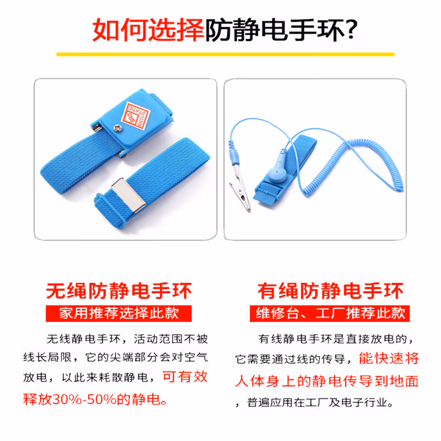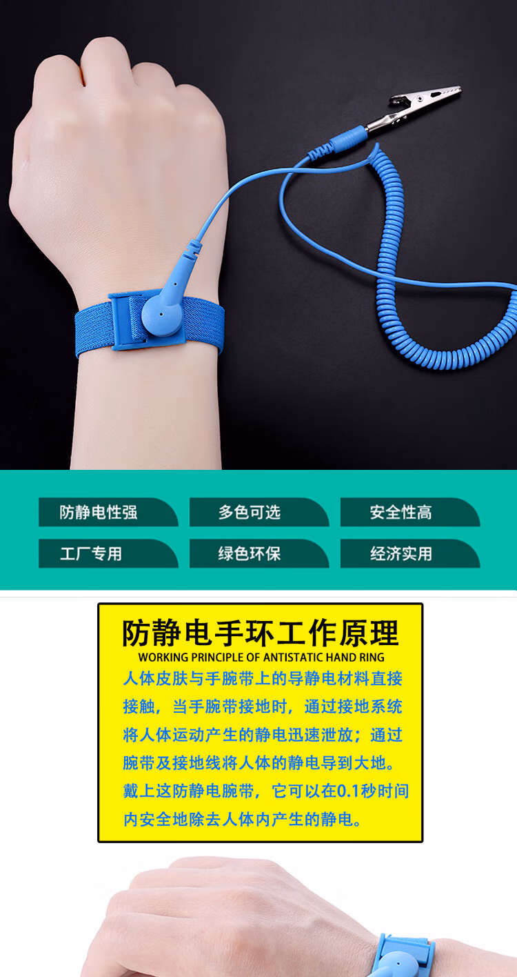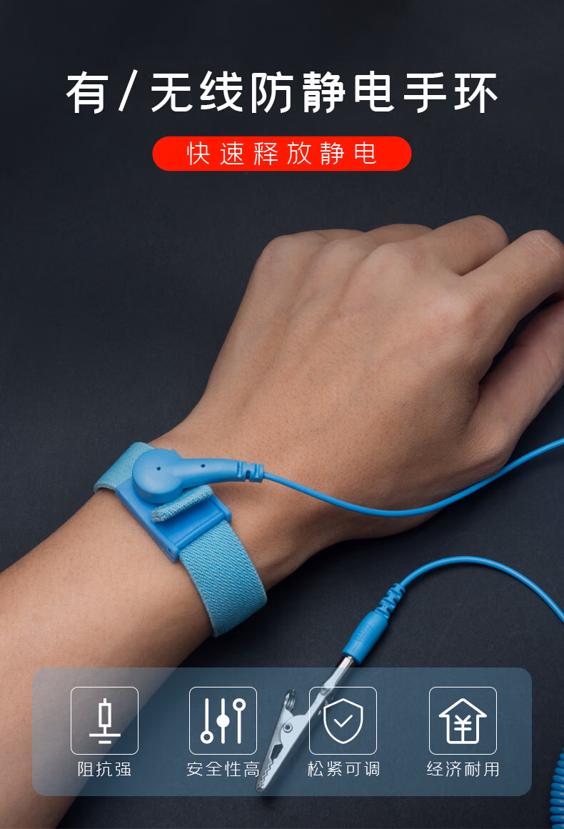 > 安达通 防静电手环 有线无线手环电子厂有绳金属手环 防静电接地扣