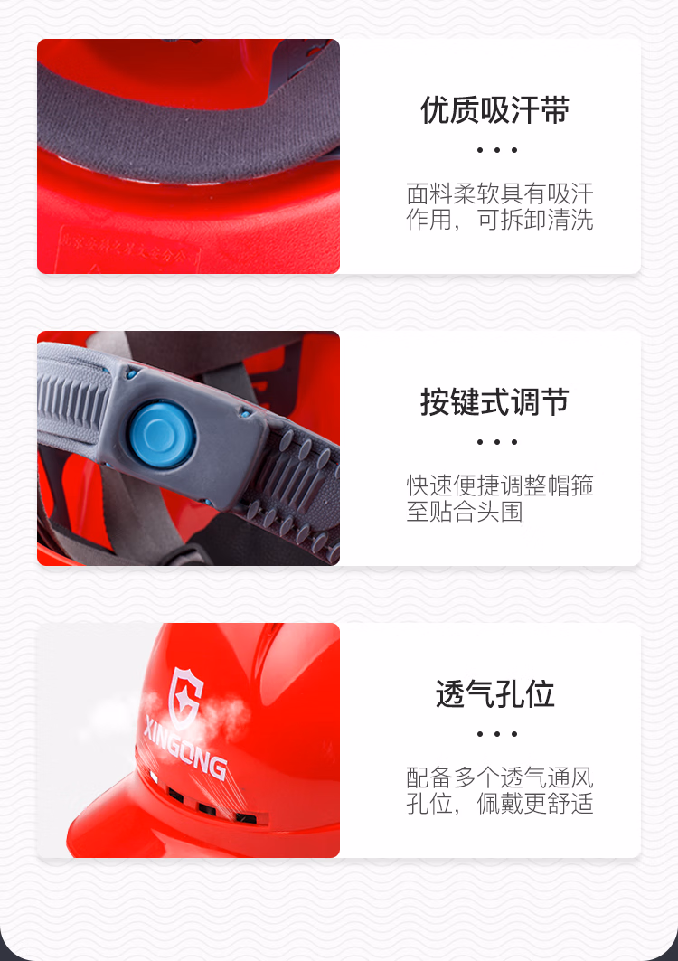 > 星工(XINGGONG)透气安全帽 ABS工地建筑工程电力施工防砸监理红色