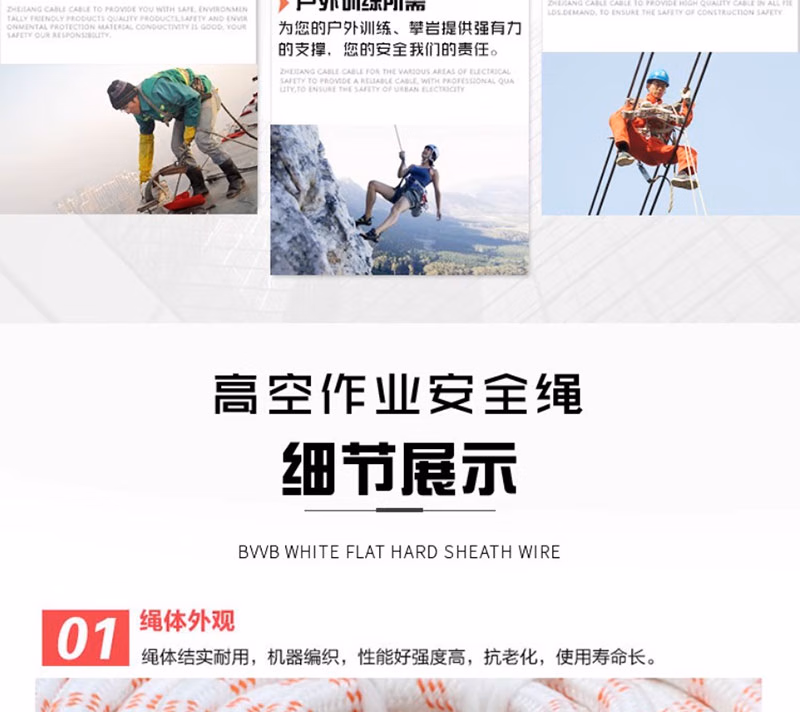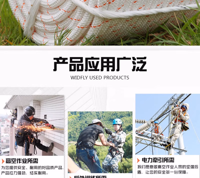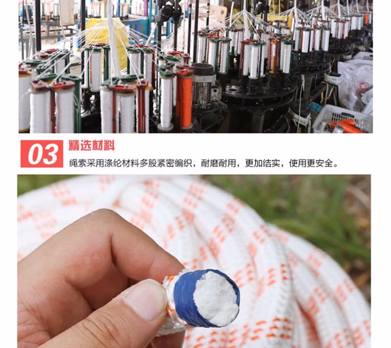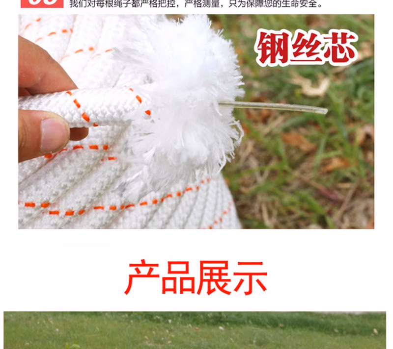 > 尼龙绳子耐磨白色粗绳钢丝芯捆绑绳登山绳安全绳高空作业绳保险绳 尼龙6毫米100米价格(无钢丝纯白色)
