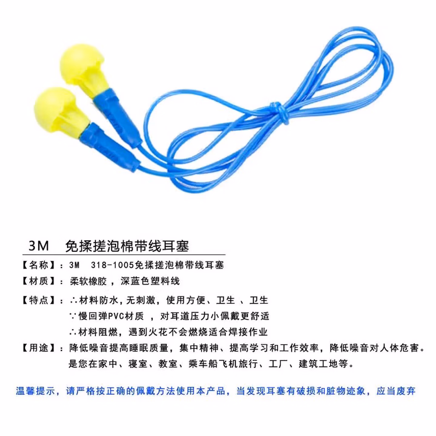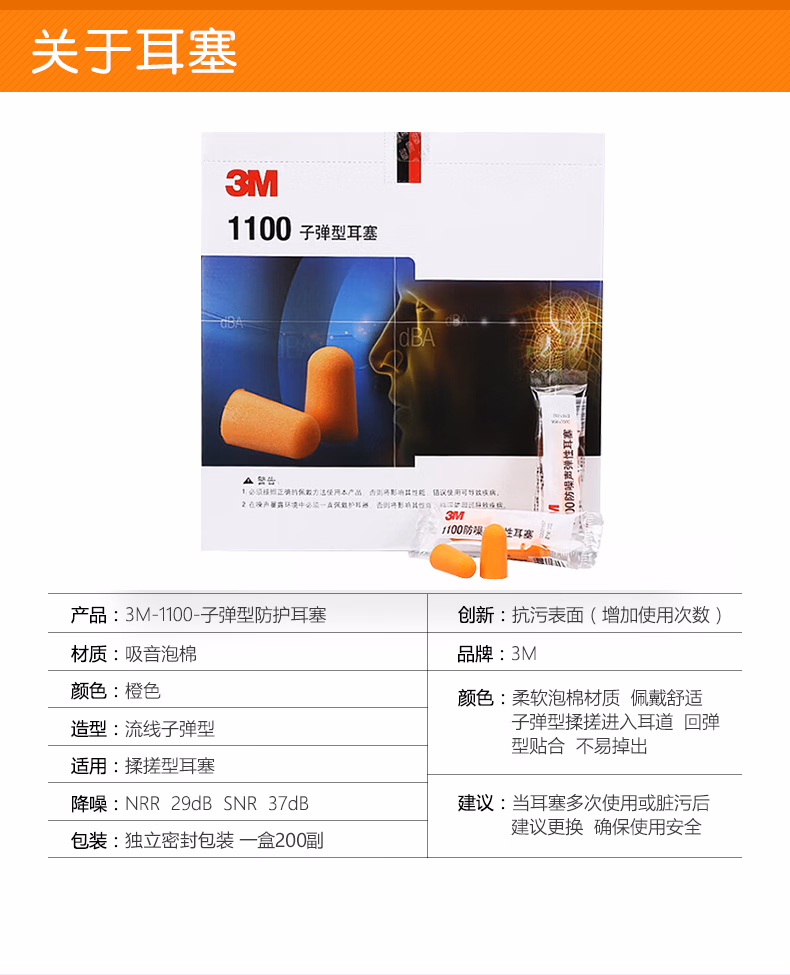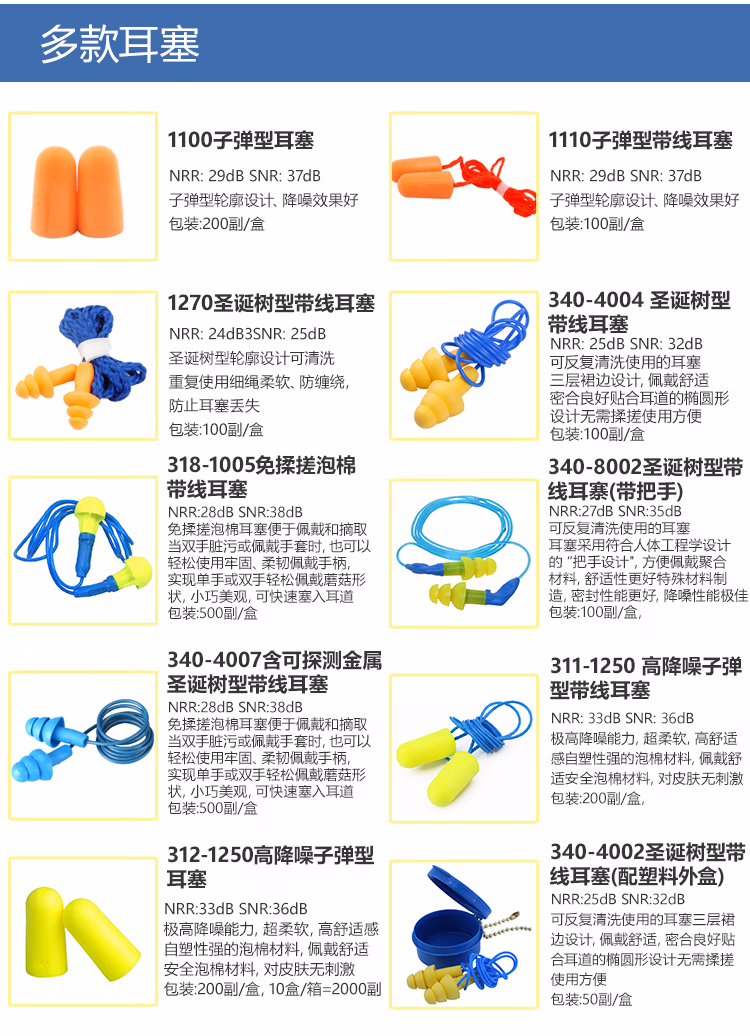 > 3M1100隔音降噪耳塞睡觉防噪音 睡眠学习游泳射击装修旅行工厂车间(10副)赠耳塞盒 318-1005蘑菇型带线耳塞5副 均码