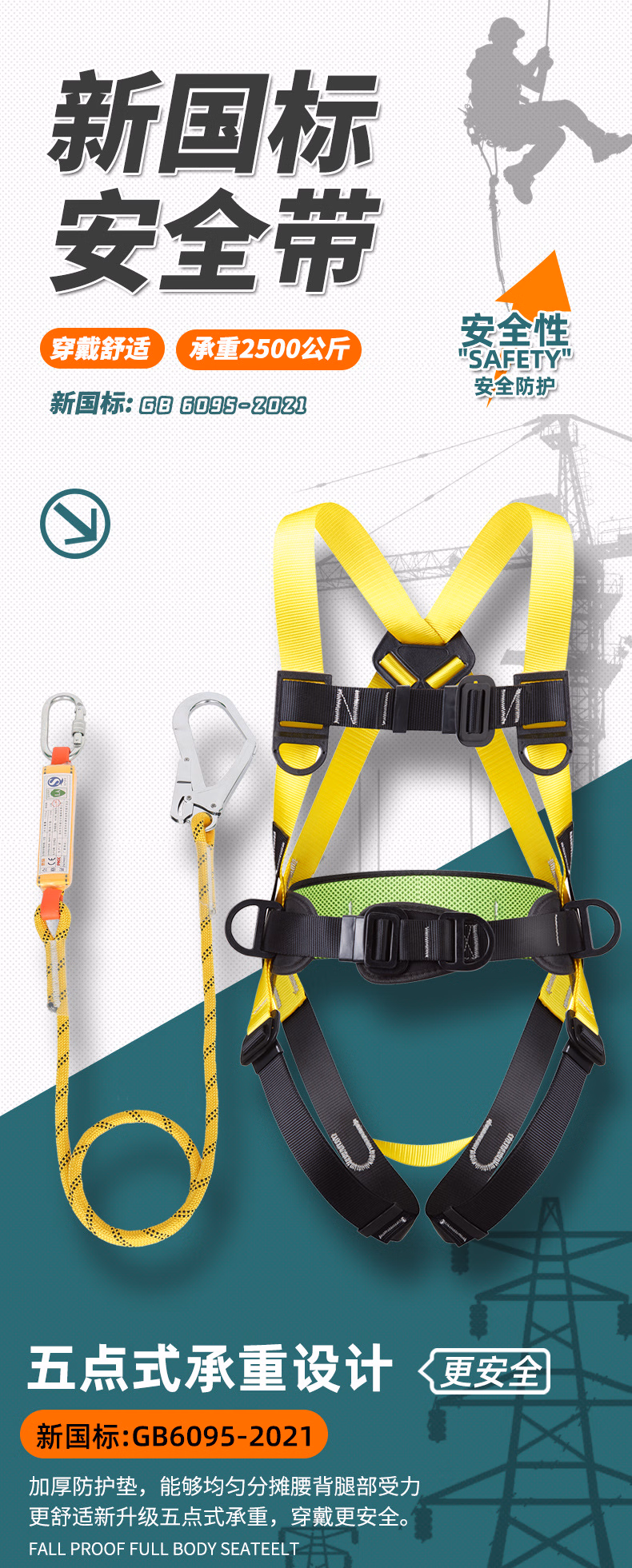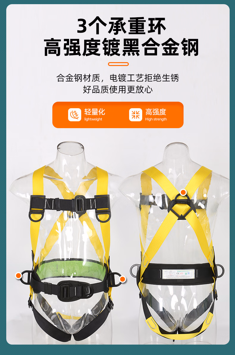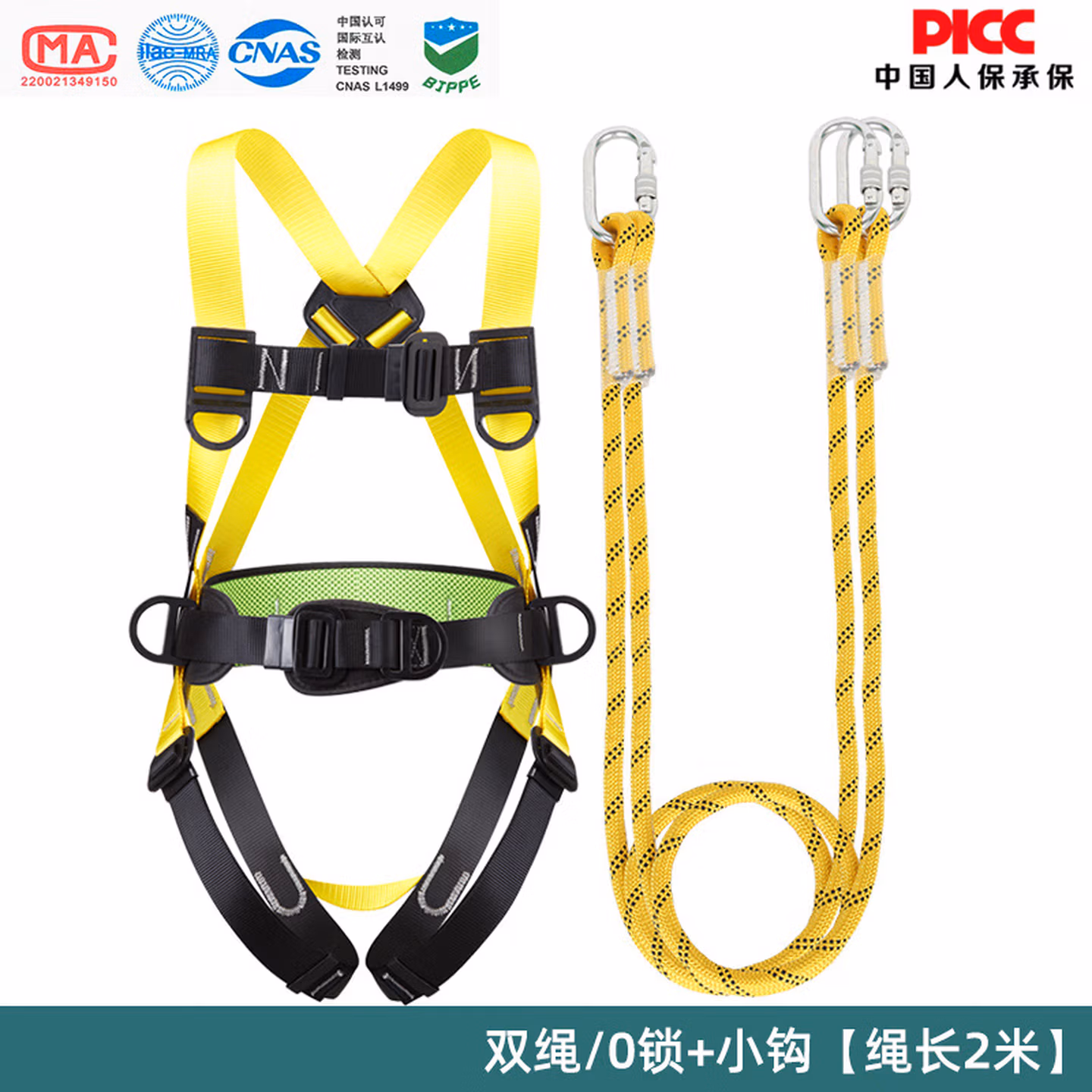 > 泽畅全身五点式高空作业安全带户外施工保险带大钩缓冲耐磨安全绳套装 单O型钩3米【无缓冲】