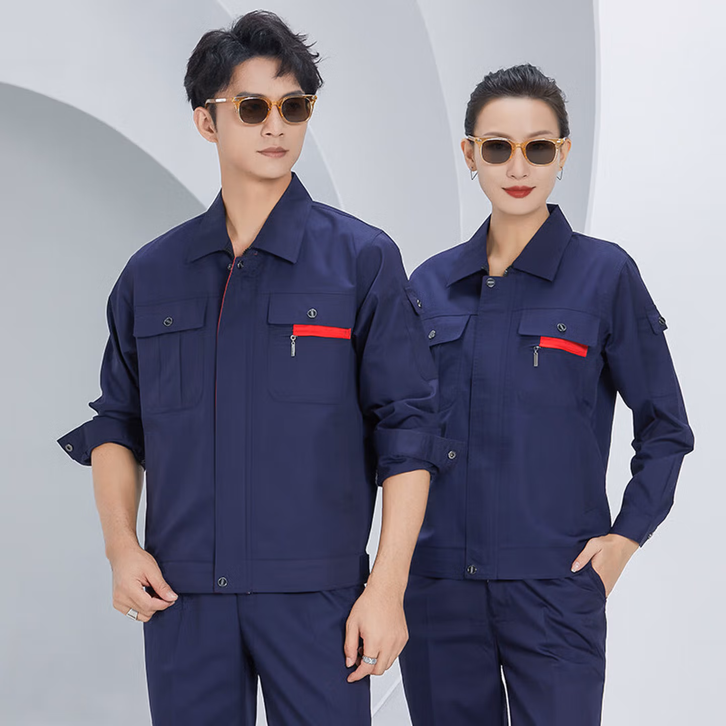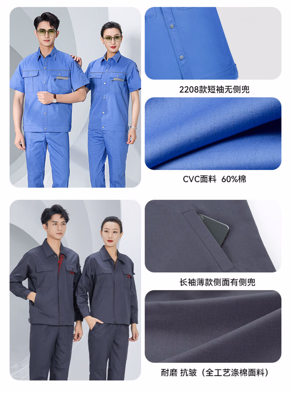 派普硕夏季短袖工作服套装男薄款耐磨汽修厂服上衣车间机电工劳动劳保服 (长袖薄款)藏蓝色套装 3XL