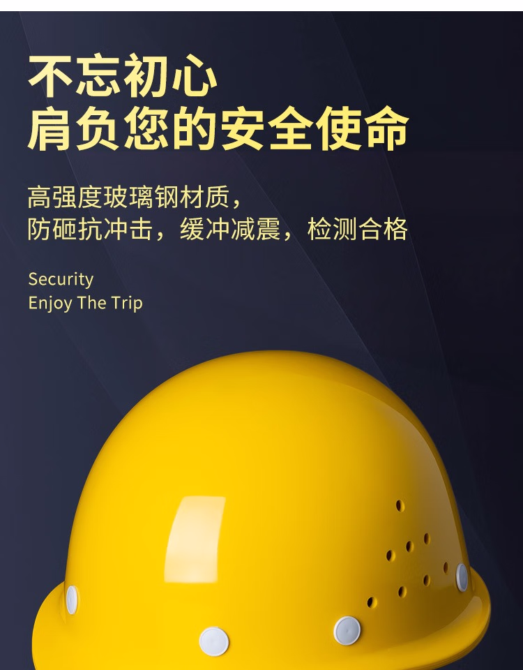 高强度安全帽工地国标玻璃纤维加厚安全帽施工建筑工程电力领导定制 玻钢无透气孔白色[旋转内衬]