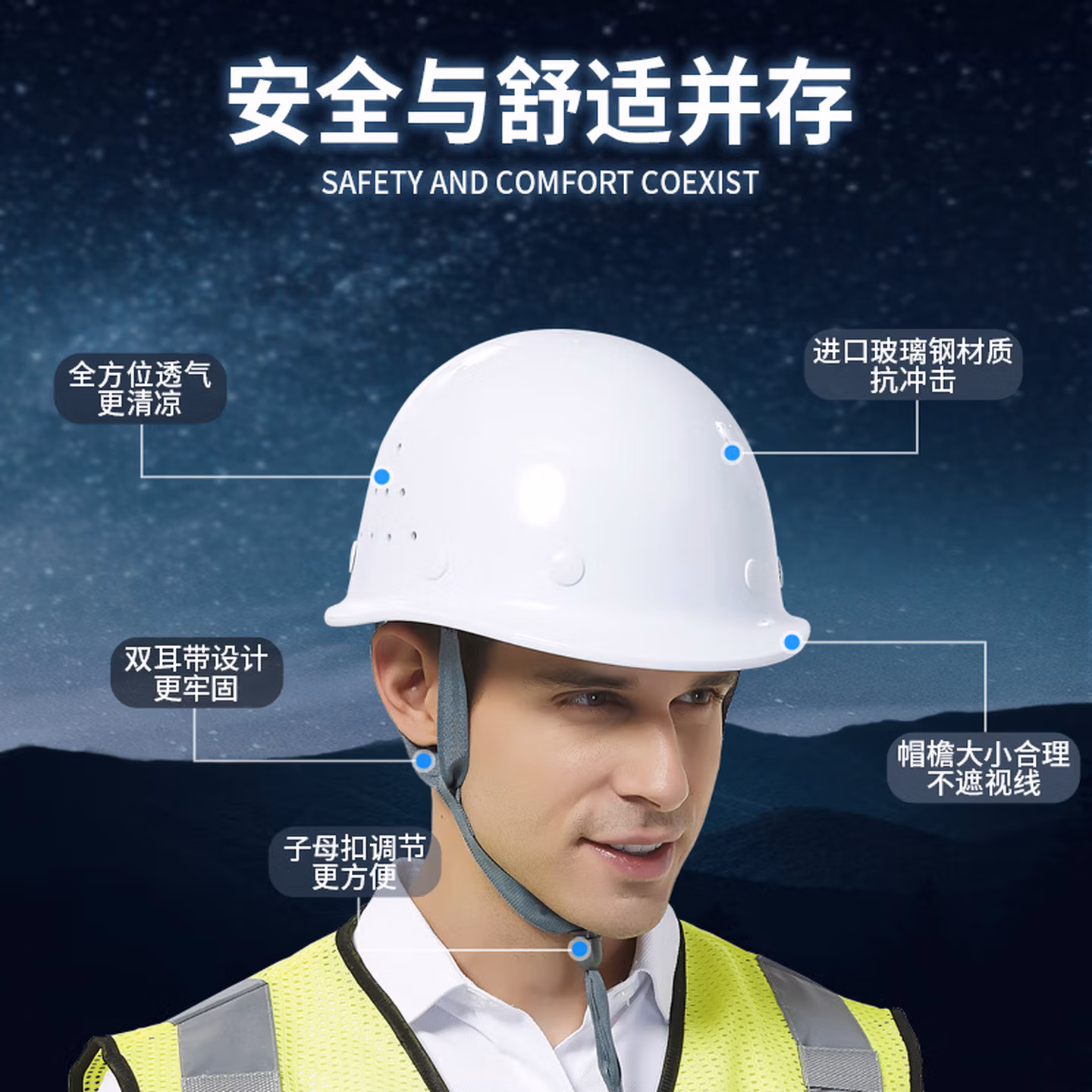 > 高强度安全帽工地国标玻璃纤维加厚安全帽施工建筑工程电力领导定制 玻钢无透气孔白色[旋转内衬]