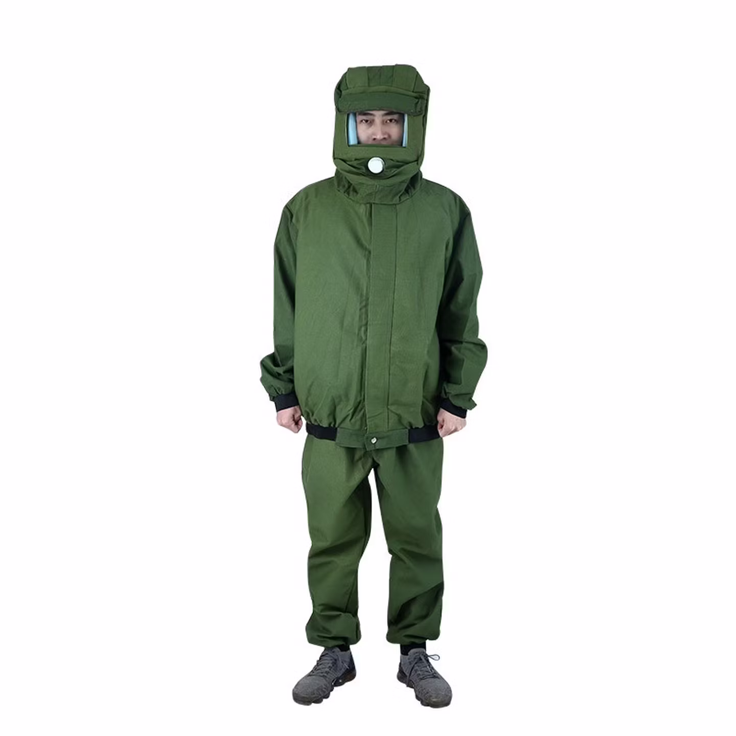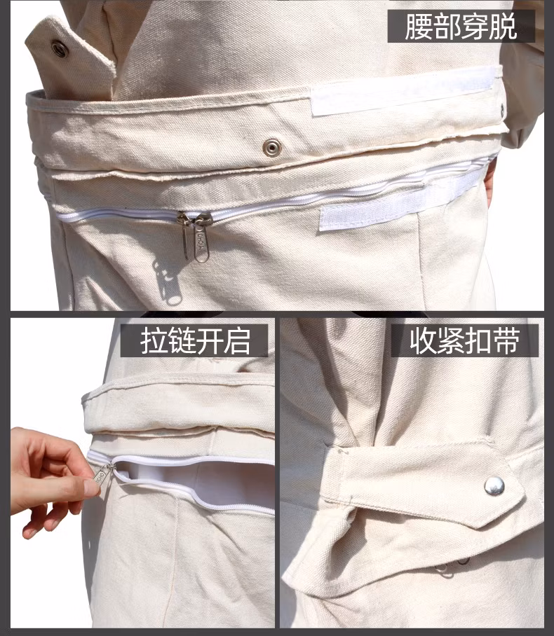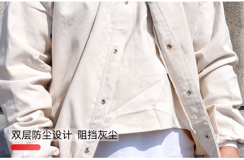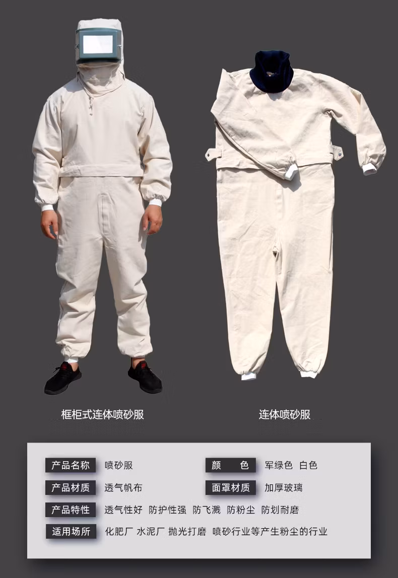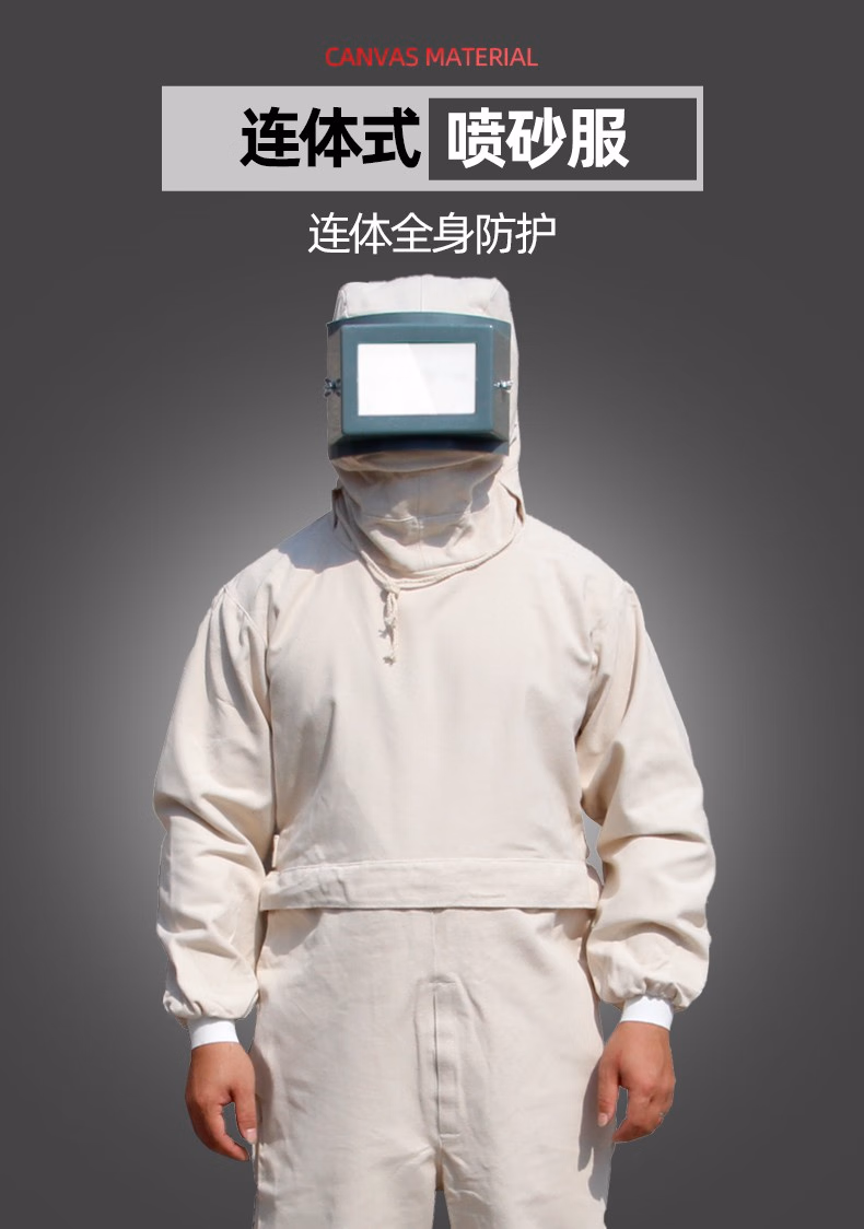 > 喷砂衣打砂服帆布加厚油漆涂料服分连体打沙喷沙冲砂防护服打磨帽 白色连体套装 均码