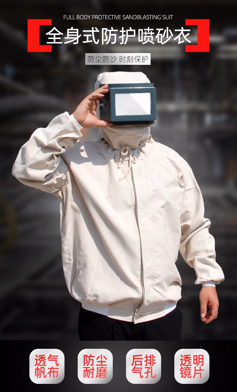 喷砂衣打砂服帆布加厚油漆涂料服分连体打沙喷沙冲砂防护服打磨帽 白色连体套装 均码