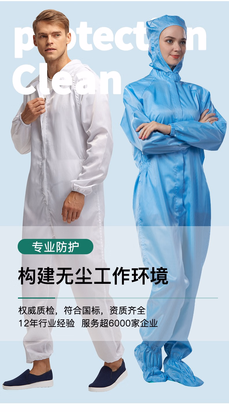 > 翰洋洁净(HANYANGCLEAN) 连体无尘服 洁净服 防静电服工作服 无尘车间洁净区净化服 连脚超净服 耐高温灭菌防尘服 白色-三连体常规款 XL