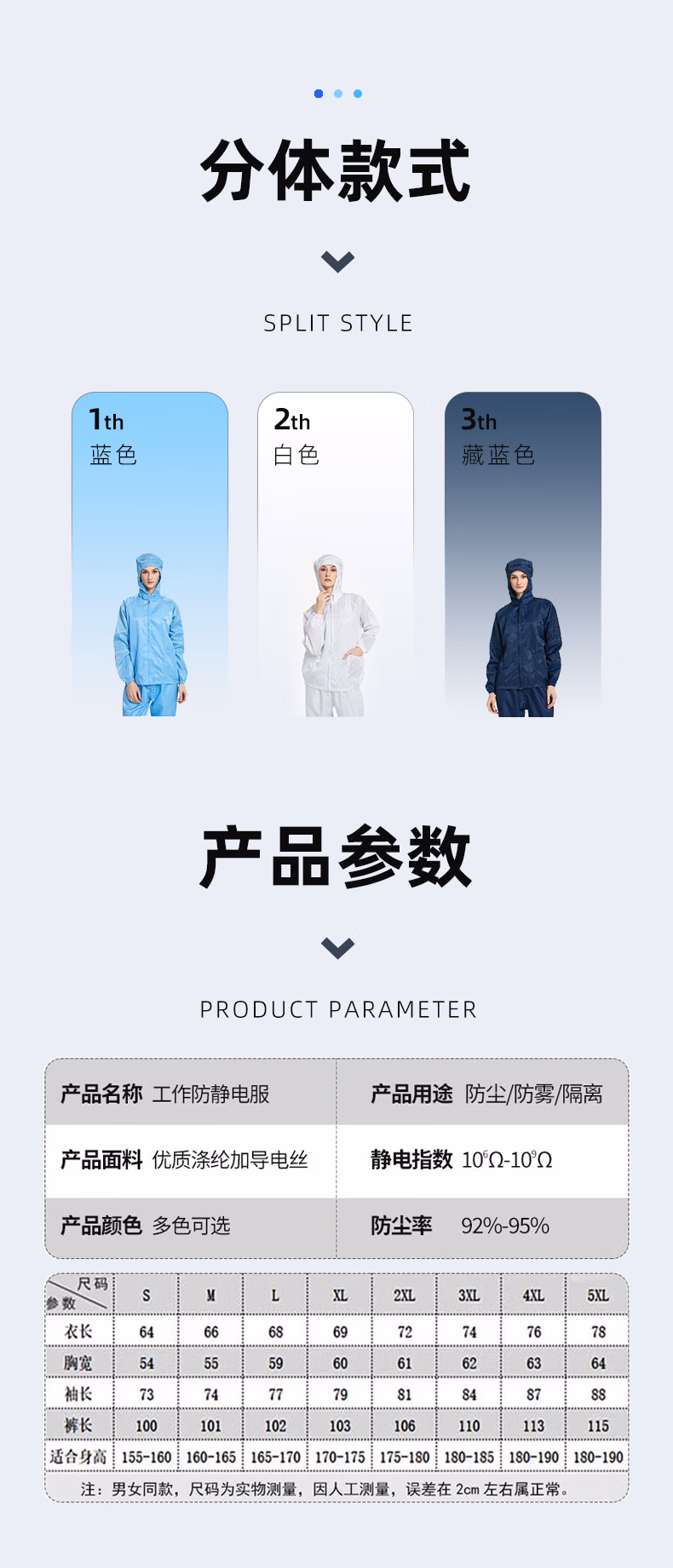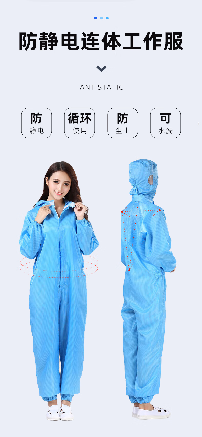 > 西仕盾 防静电防尘服无尘 净化洁净防护工作服 蓝色连体 2XL码
