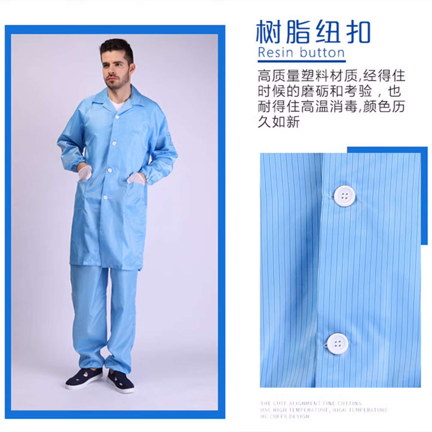 > 安达通 防静电大褂 无尘耐磨工衣防护工作服 翻领大褂浅绿色 XL