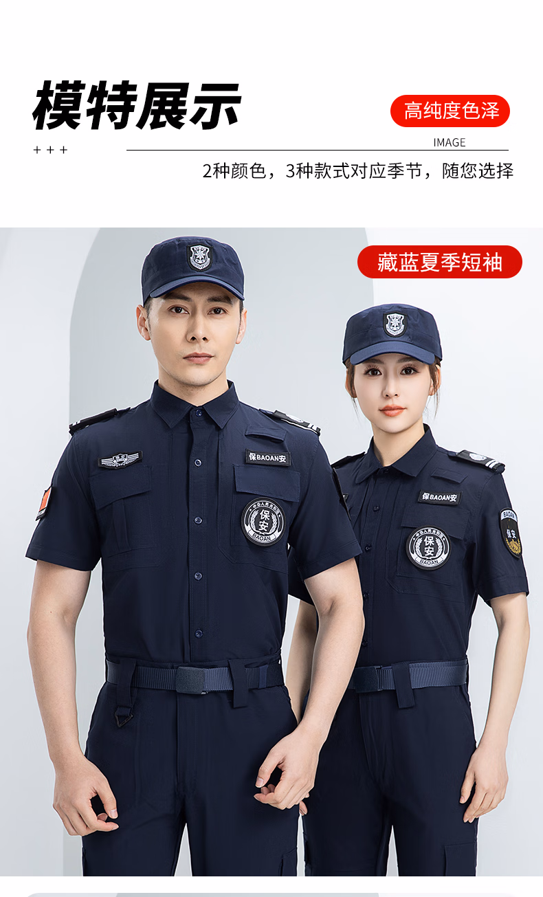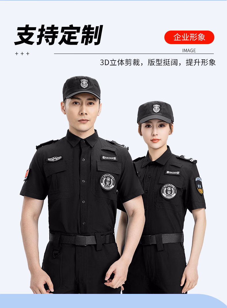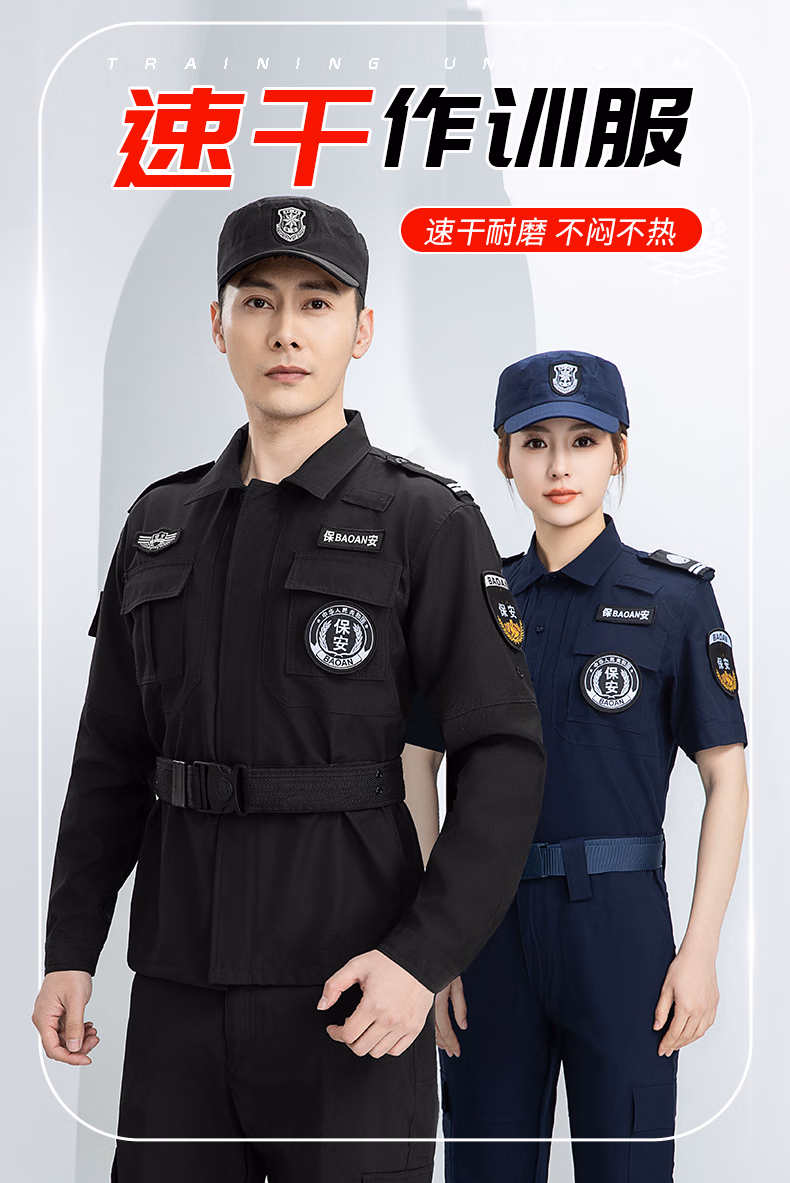> 保安服速干长袖春秋套装夏季薄款制服保安工作服短袖速干作训服 蓝色速干夏短袖套装+标志 175