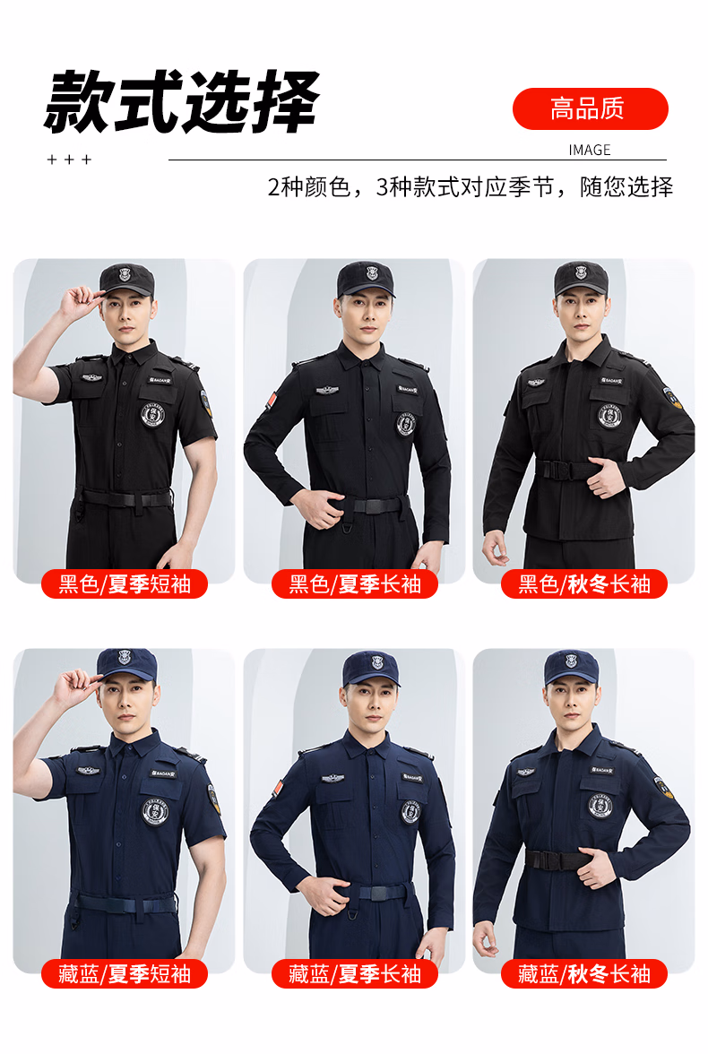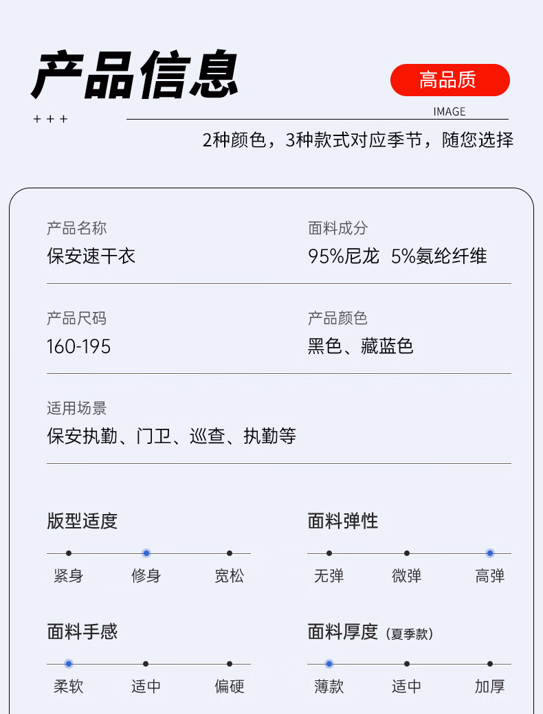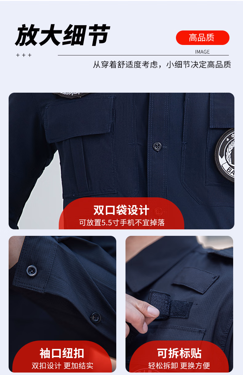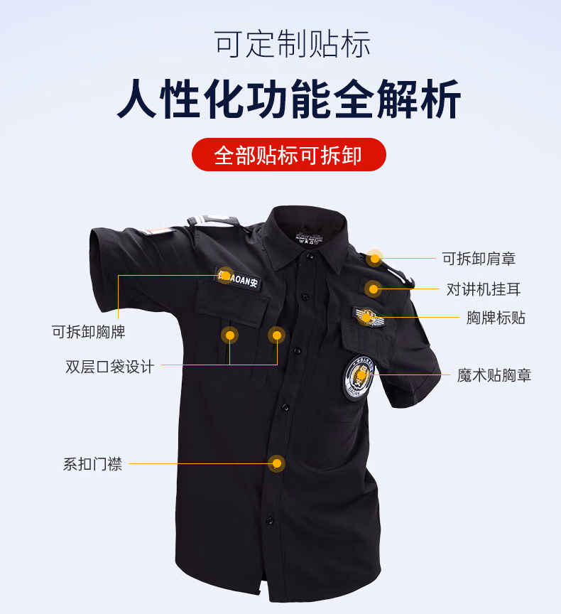 > 保安服速干长袖春秋套装夏季薄款制服保安工作服短袖速干作训服 蓝色速干夏短袖套装+标志 175