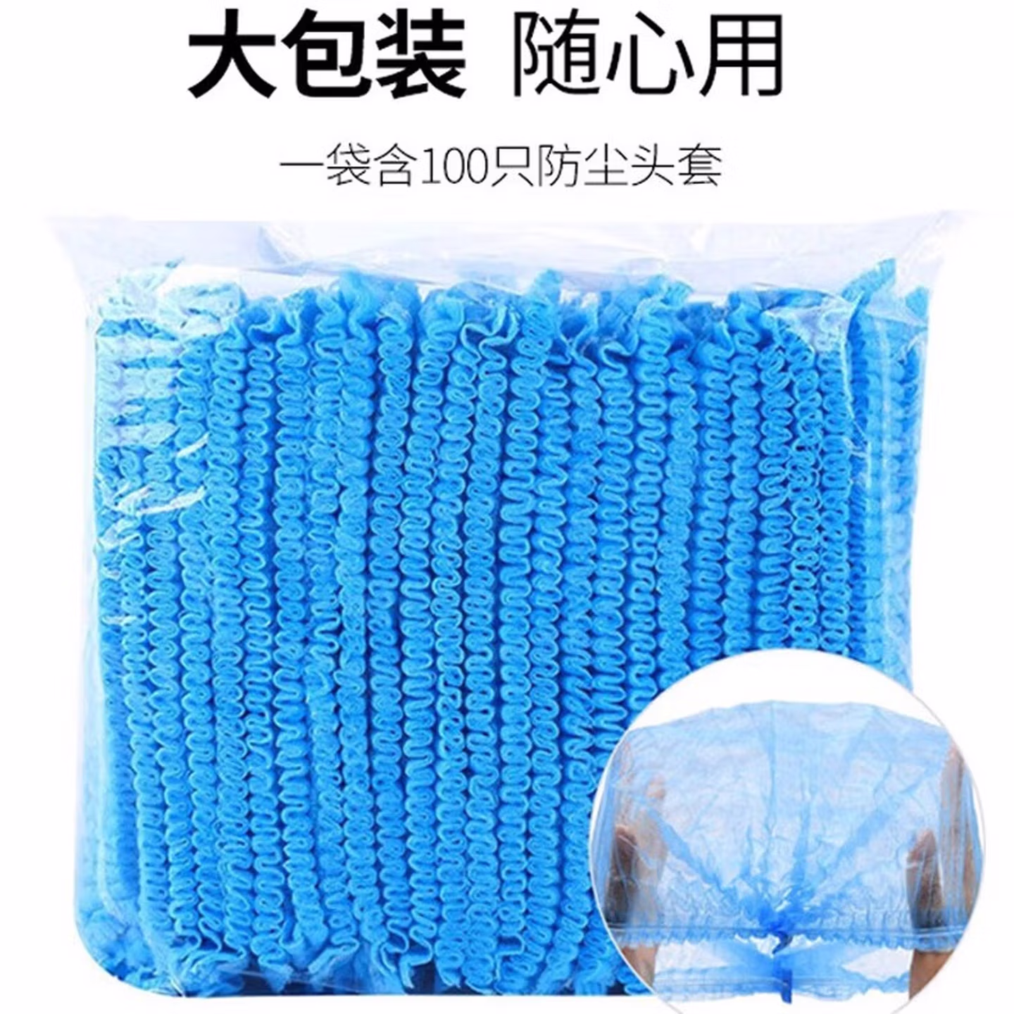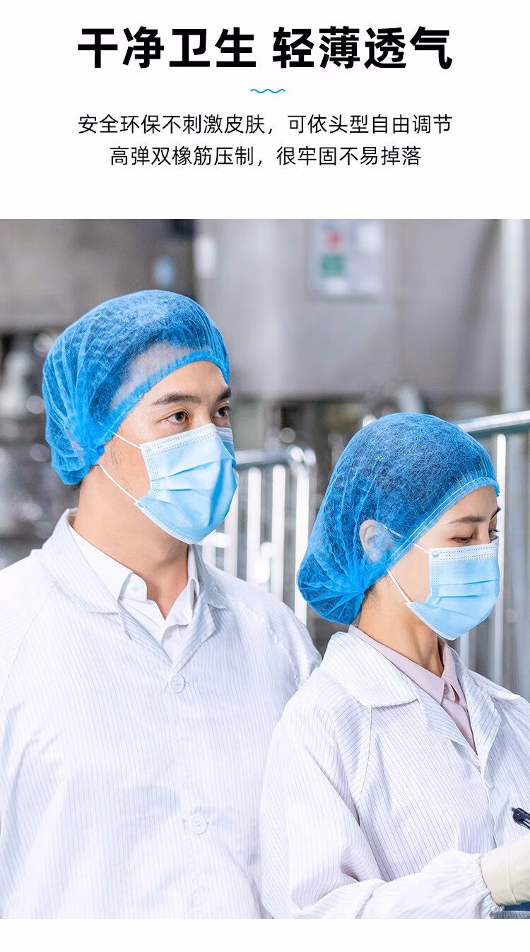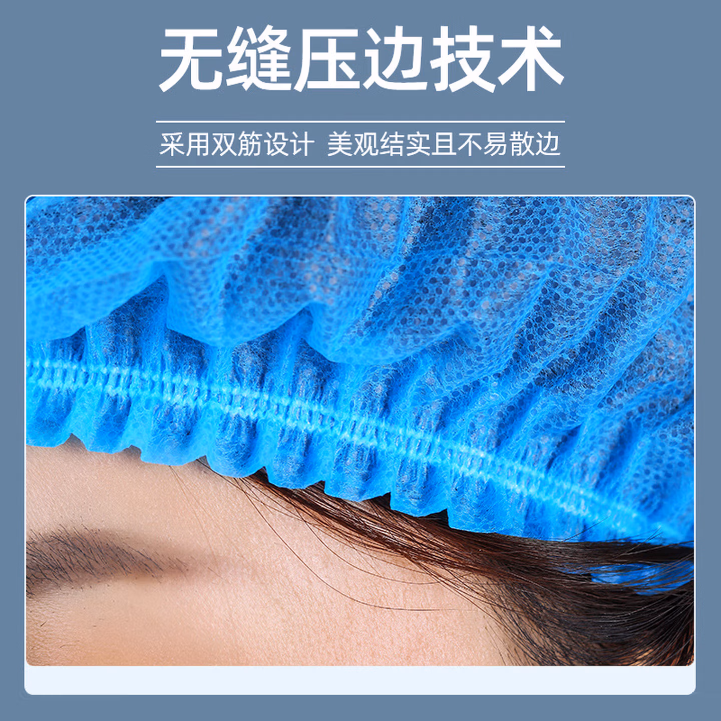 > 喜润家一次性头套帽子网帽无纺布无尘帽餐饮厨房防尘隔离帽100只 蓝色