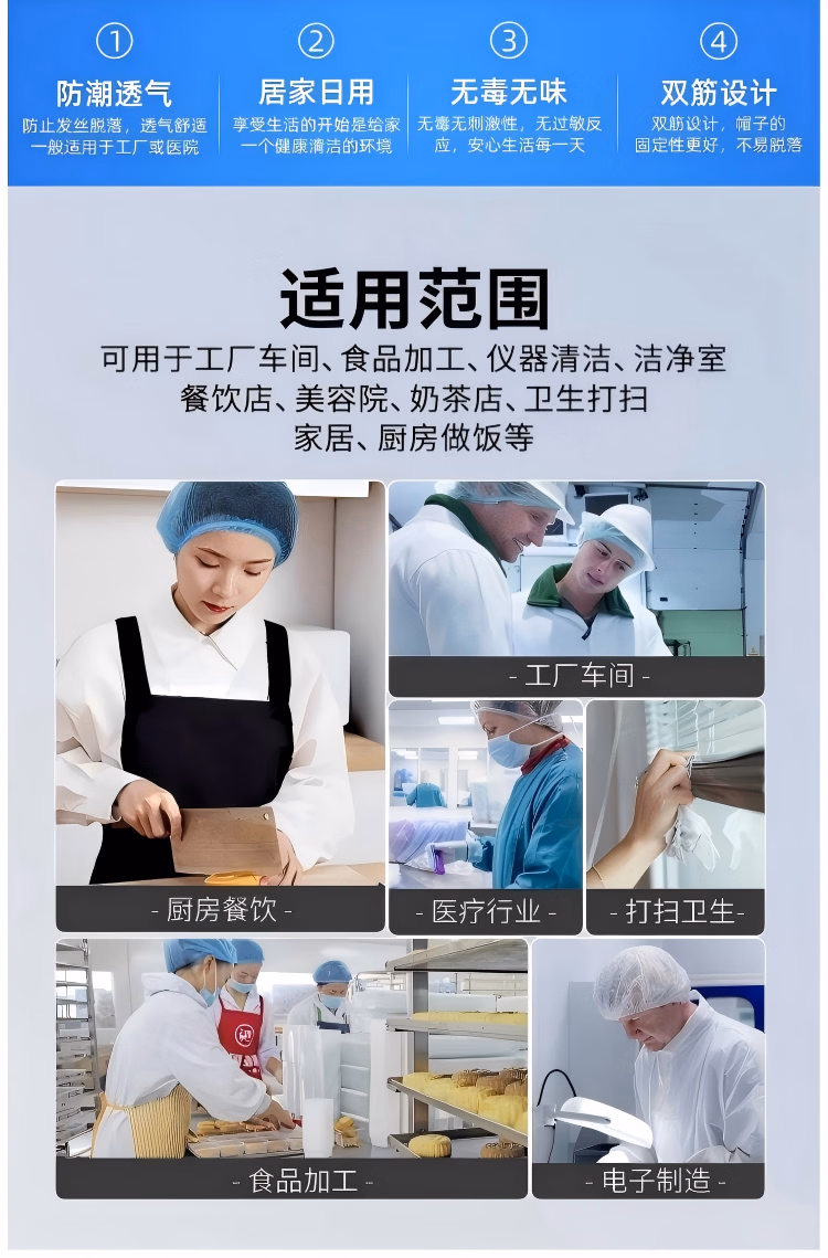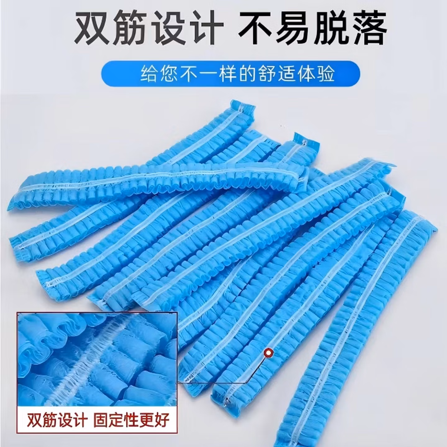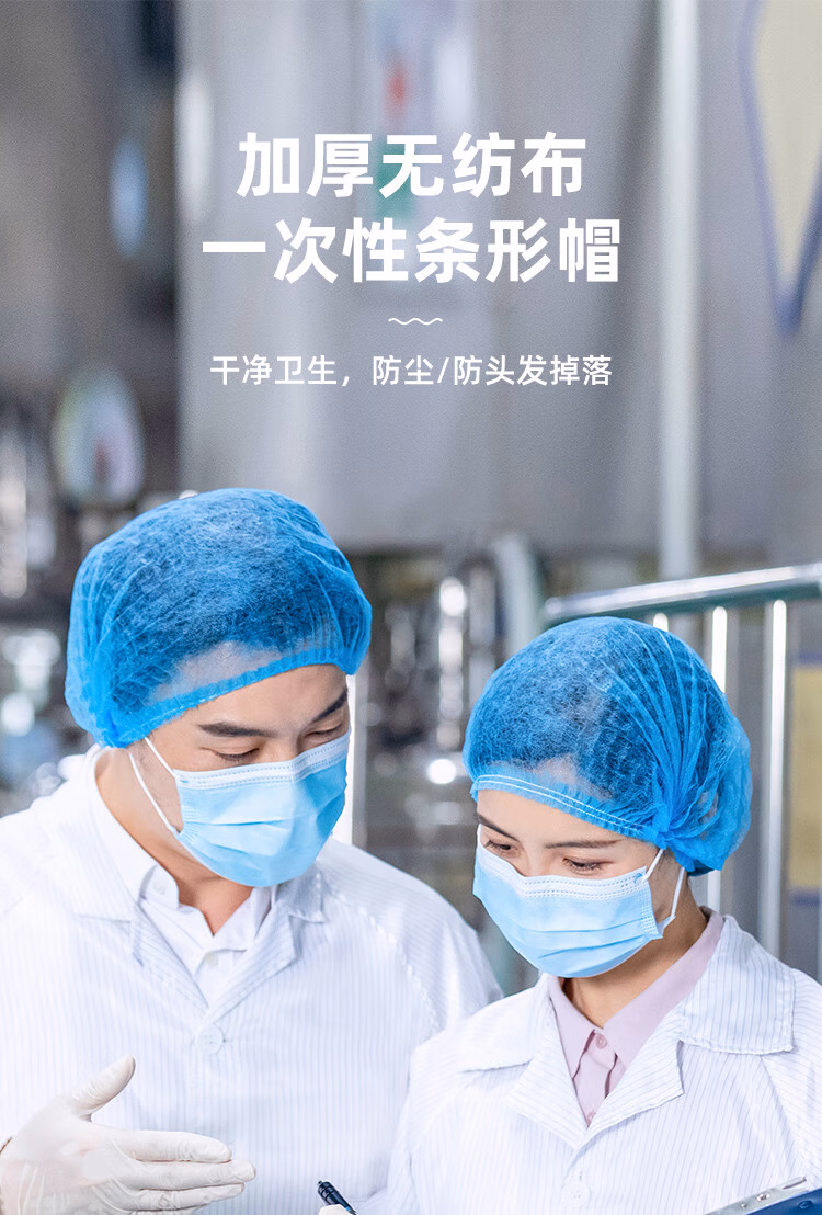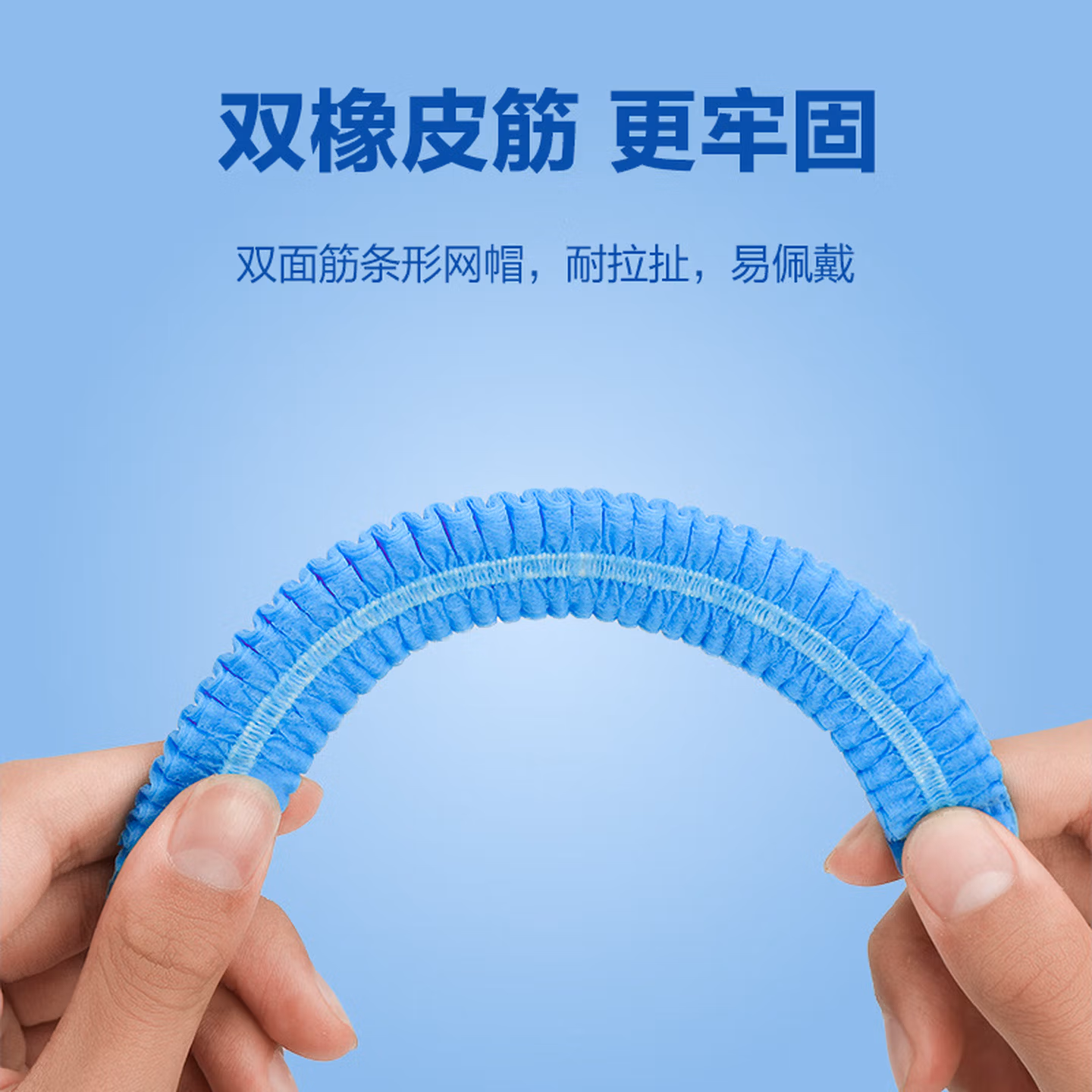 > 喜润家一次性头套帽子网帽无纺布无尘帽餐饮厨房防尘隔离帽100只 蓝色