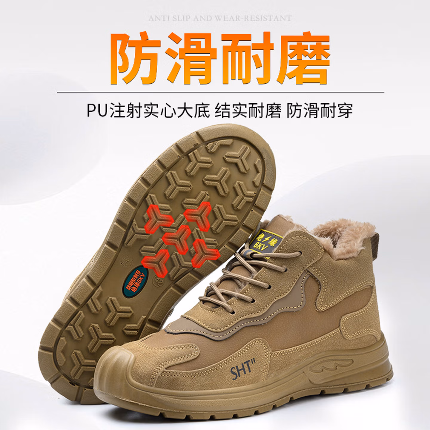 > 麒燕(QYLB)1586超纤+翻毛皮防砸防刺穿绝缘6KV安全鞋 双密度PU底 铁包头 棉棕 41码(双)