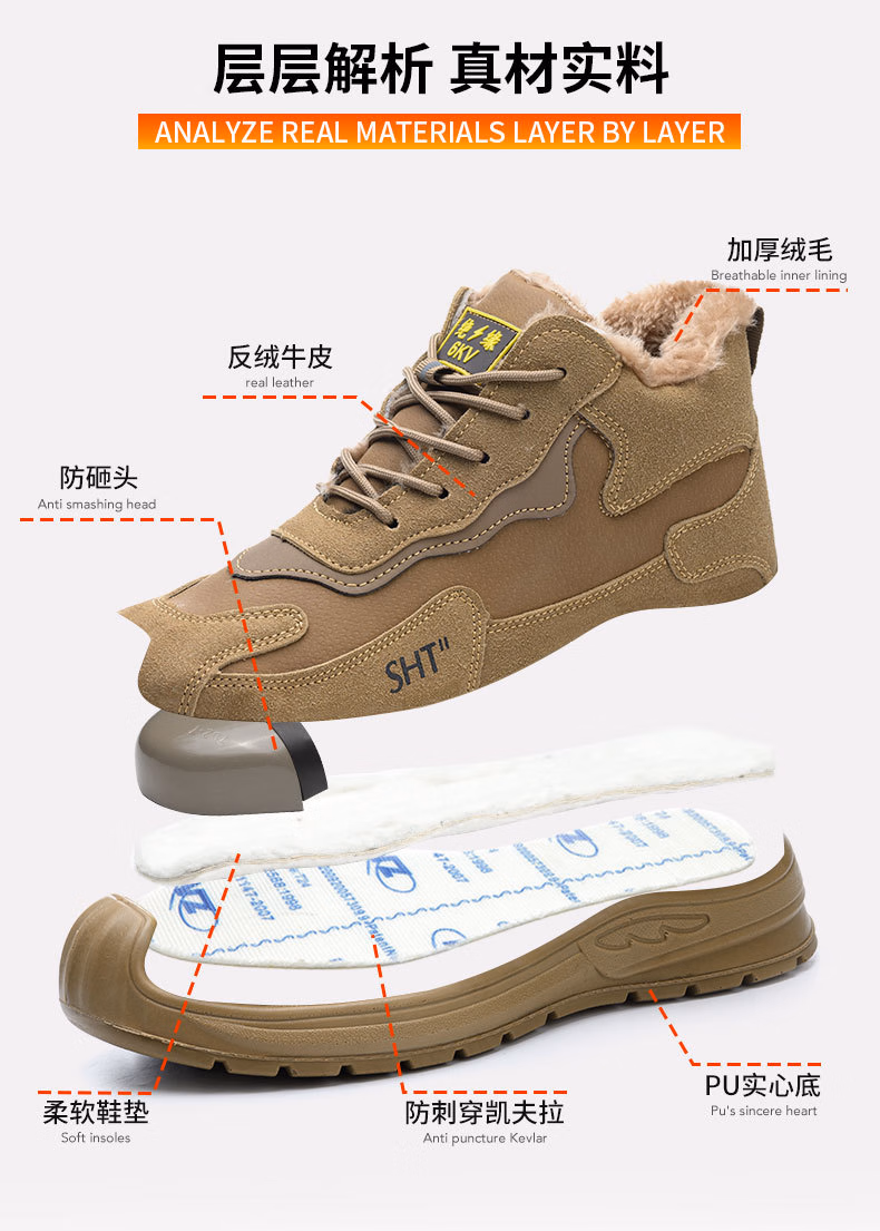 麒燕(QYLB)1586超纤+翻毛皮防砸防刺穿绝缘6KV安全鞋 双密度PU底 铁包头 棉棕 41码(双)