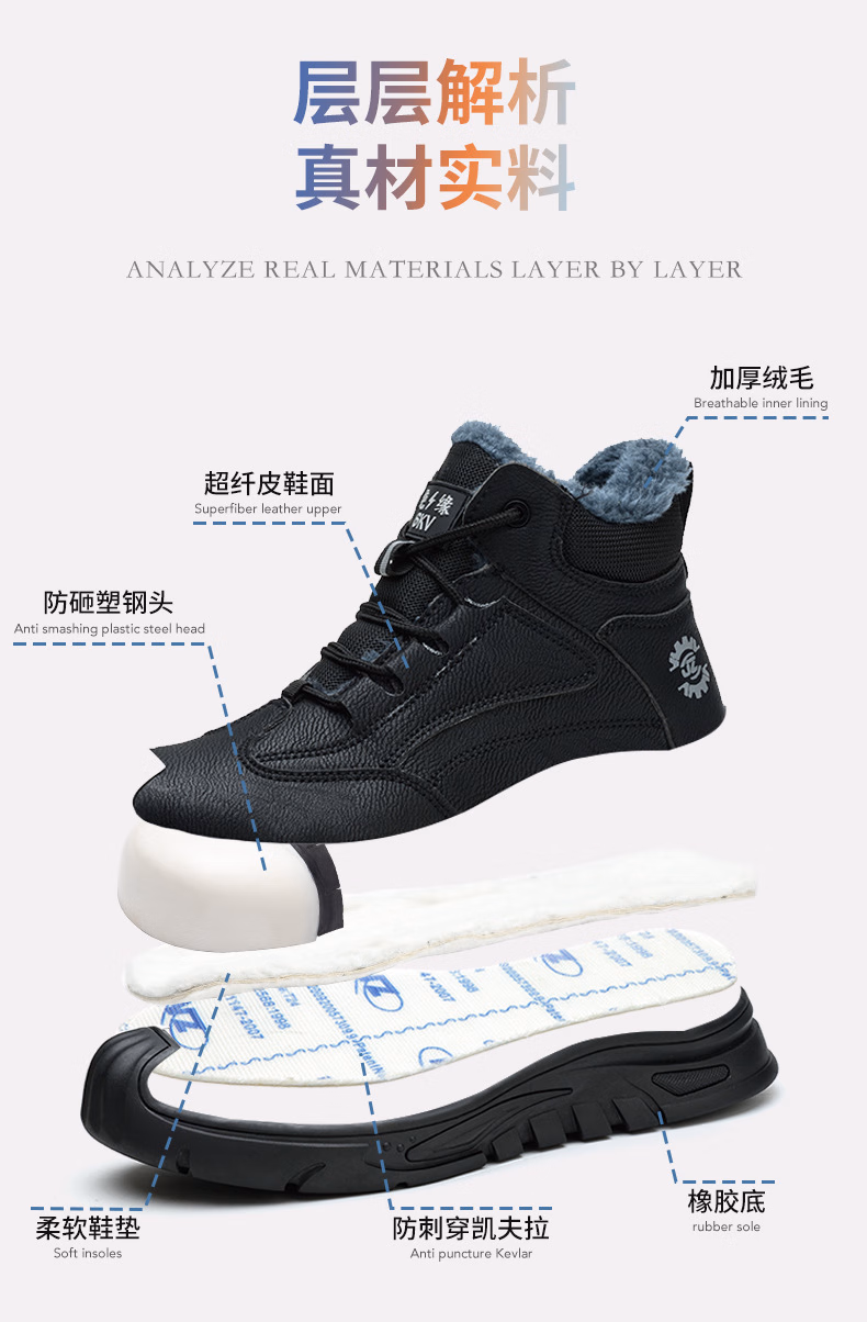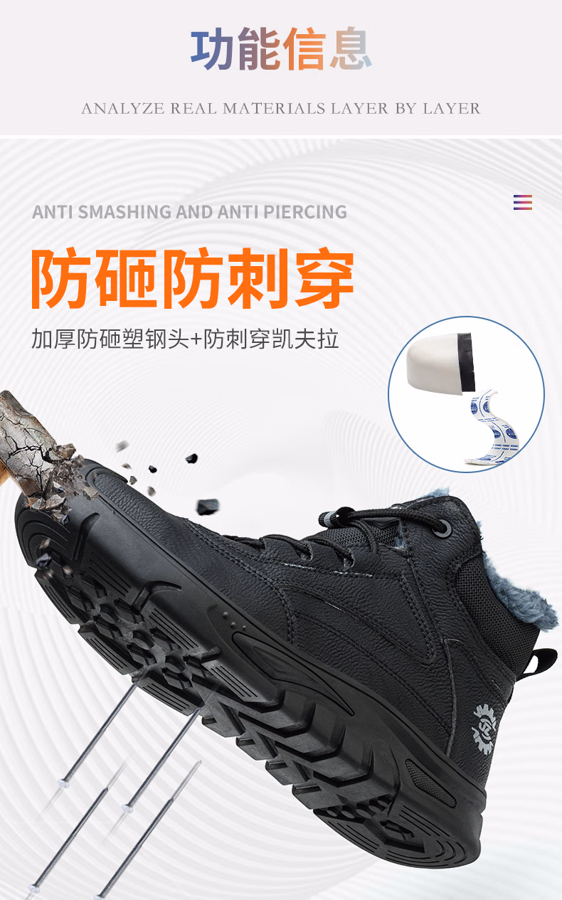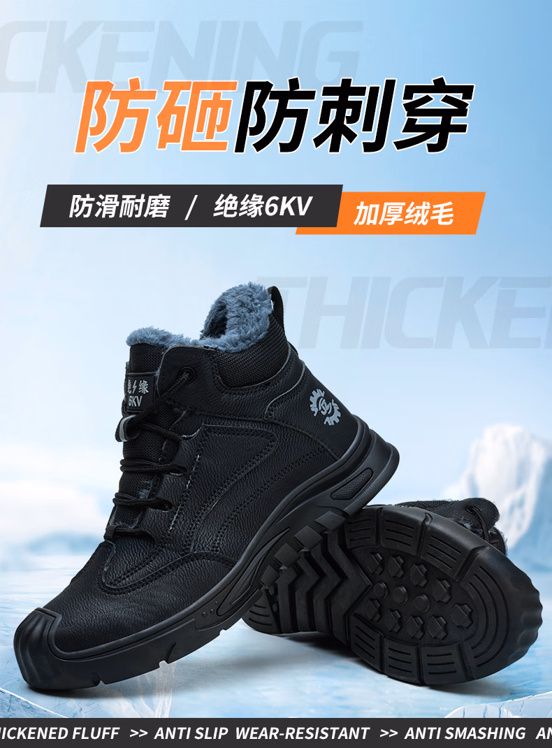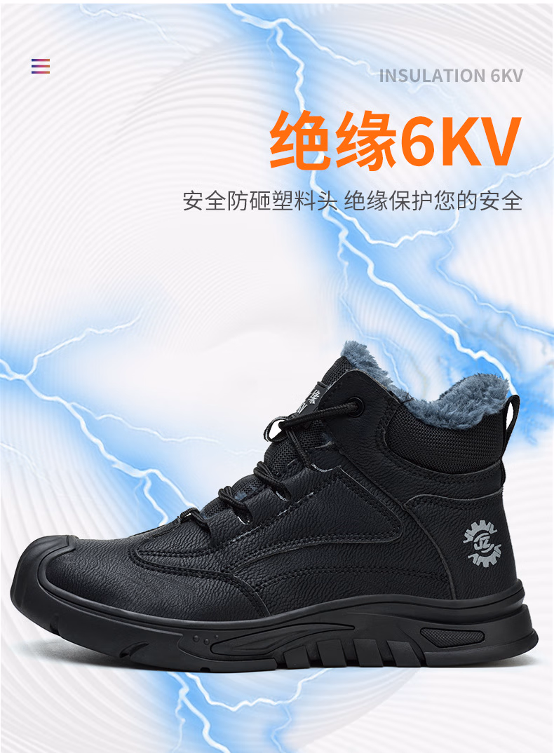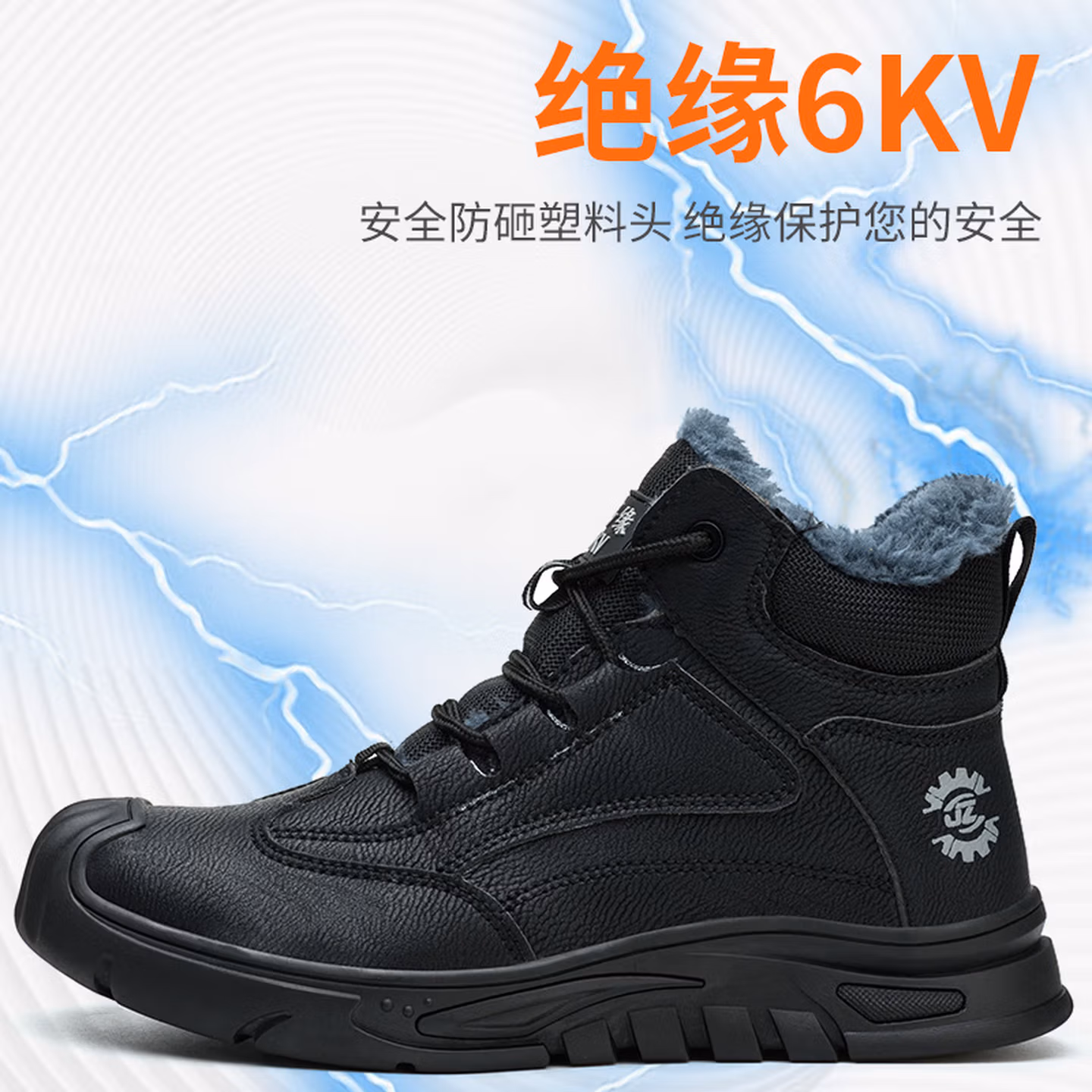 麒燕(QYLB)安全鞋 冬季绝缘6KV高帮棉鞋 防砸防刺穿塑包头轻便耐磨工作鞋 黑色 1585 40码