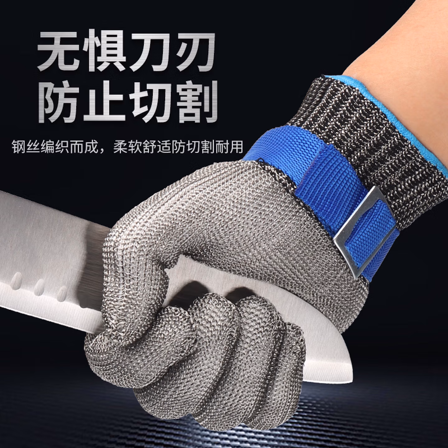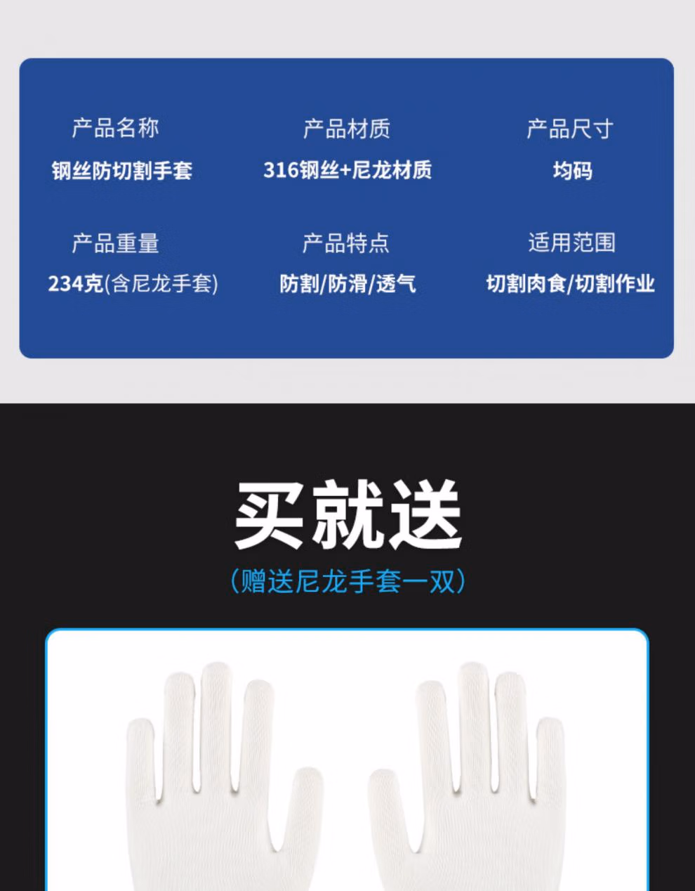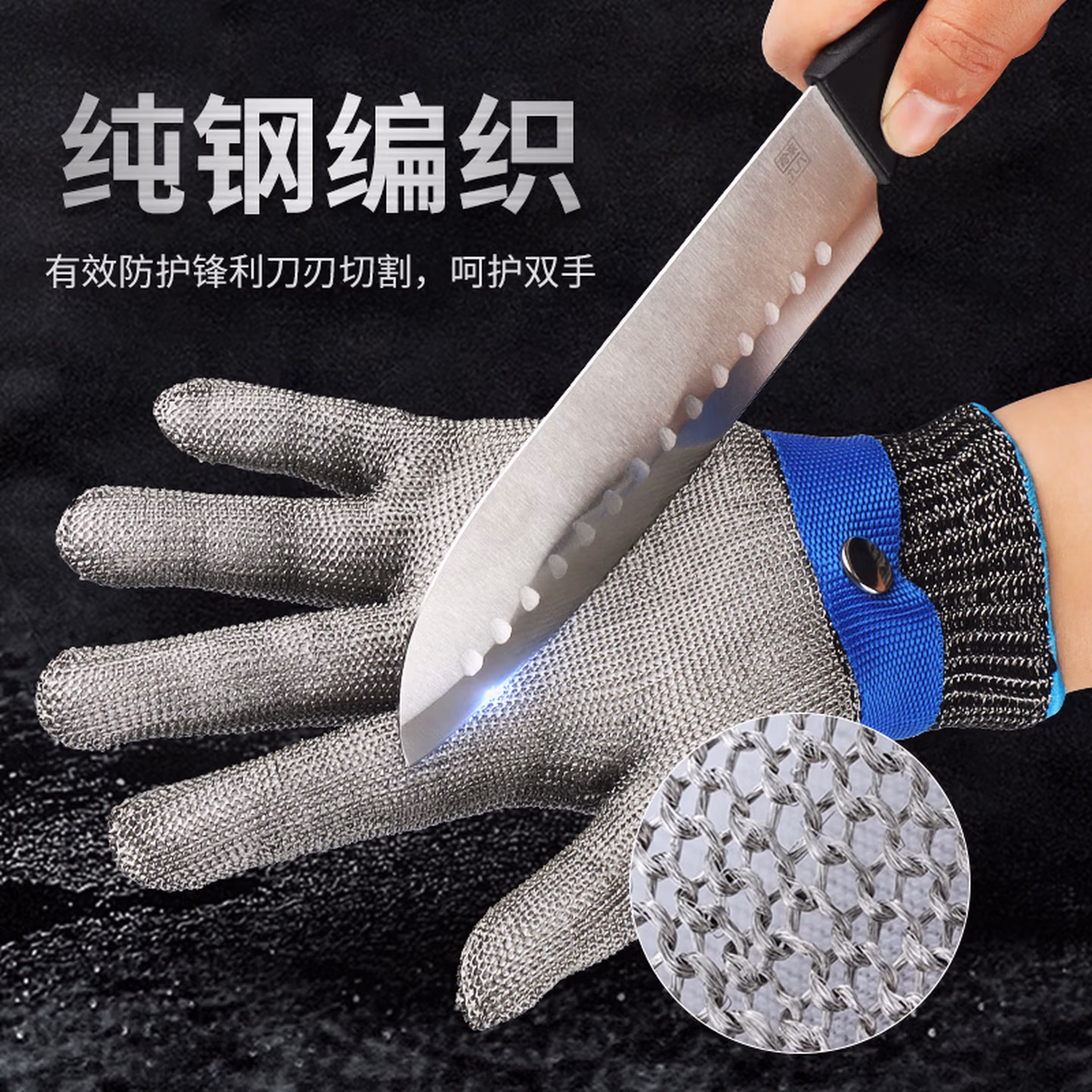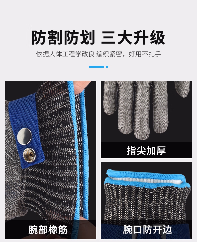 Golmud五级钢丝防切割手套厨房割肉杀鱼防刺防滑耐磨不锈钢GM579 均码 【钢丝防割手套】单只 内衬手套GM579