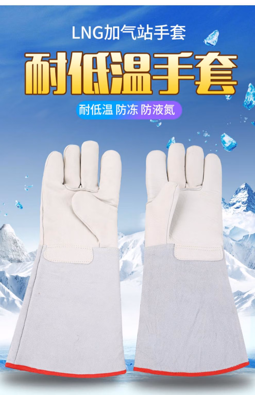 【免费开票】梦多福 防冻手套 牛皮耐低温防液氮手套干冰冷藏冷库LNG加气站劳保手套实验室防寒抗冻手套 36CM长 均码