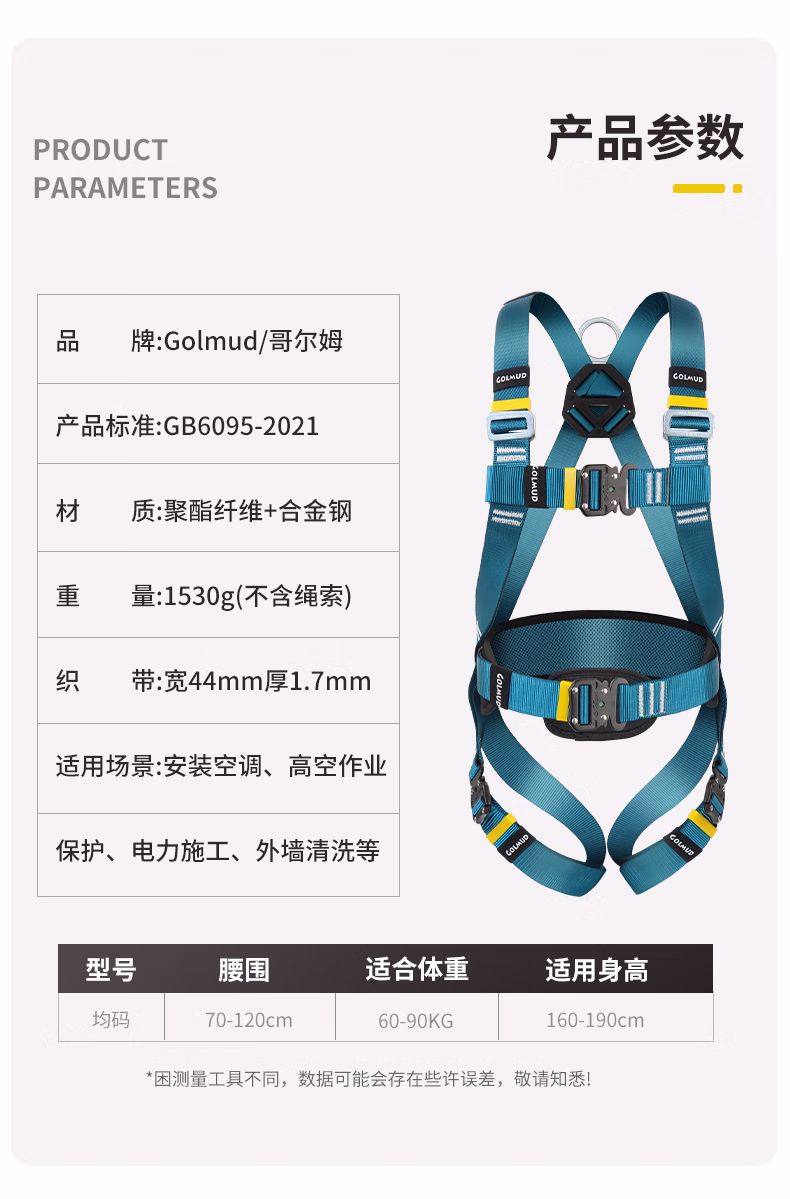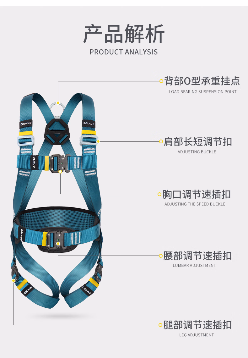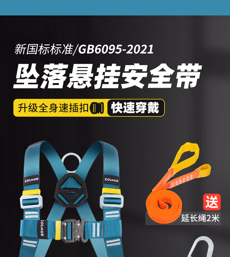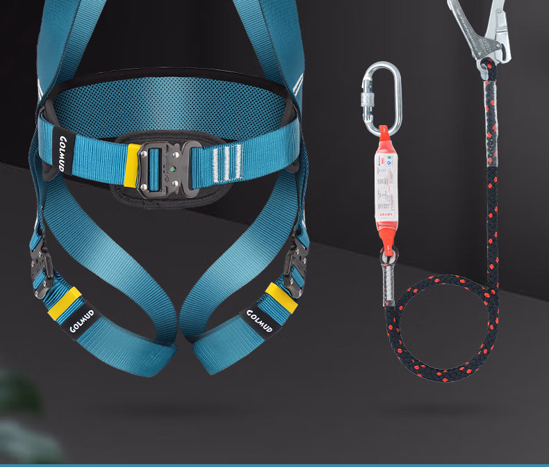 > 哥尔姆护腰五点式保险带全身防护安全带户外高空作业安全绳GM3665 单小钩缓冲包1.8米