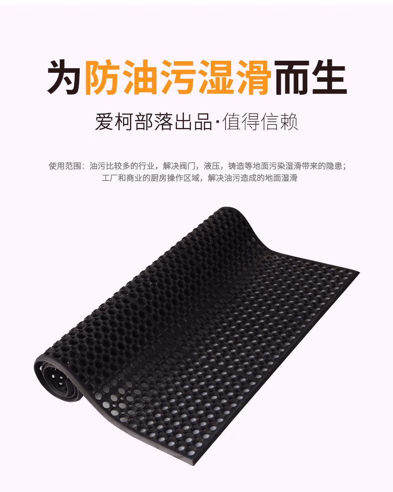 爱柯布洛橡胶防滑地垫 拼接耐油防滑地板楼梯走道垫0.9m×0.9m×9.6mm工厂车间厨房镂空胶垫黑色