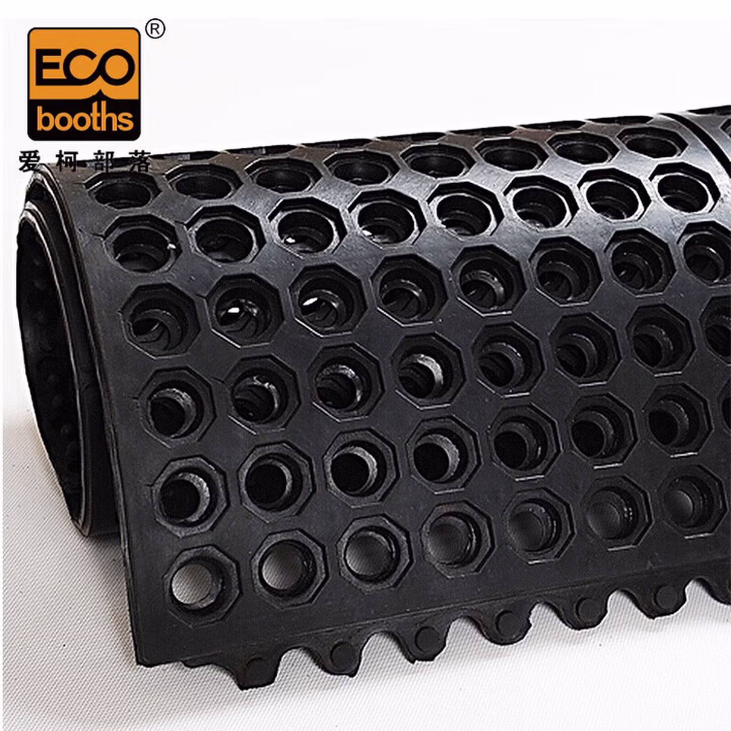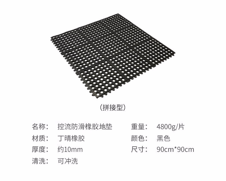 > 爱柯布洛橡胶防滑地垫 拼接耐油防滑地板楼梯走道垫0.9m×0.9m×9.6mm工厂车间厨房镂空胶垫黑色