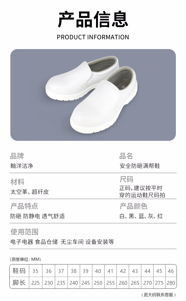 > 翰洋洁净(HANYANGCLEAN) 钢头防砸鞋安全鞋 防静电工作鞋洁净鞋无尘鞋 白色 35 现货