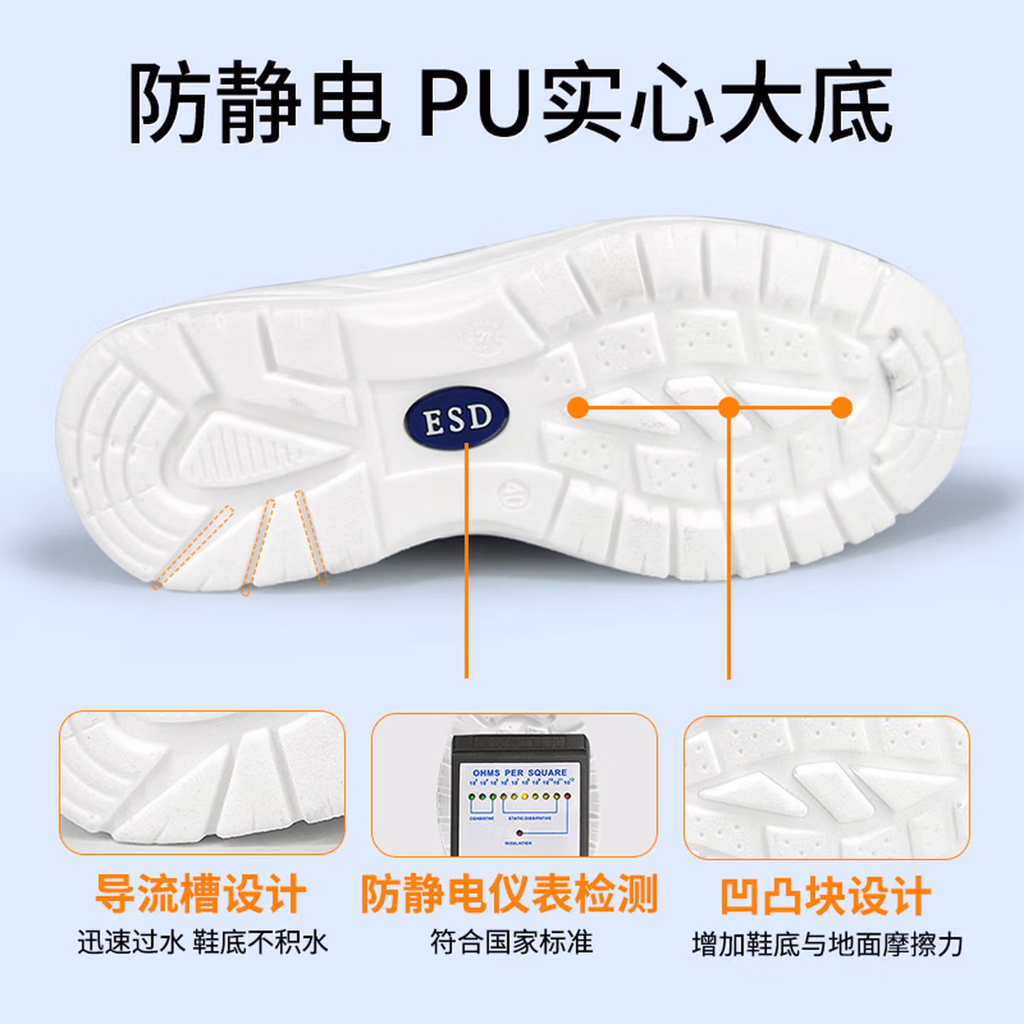 翰洋洁净(HANYANGCLEAN) 钢头防砸鞋安全鞋 防静电工作鞋洁净鞋无尘鞋 白色 35 现货