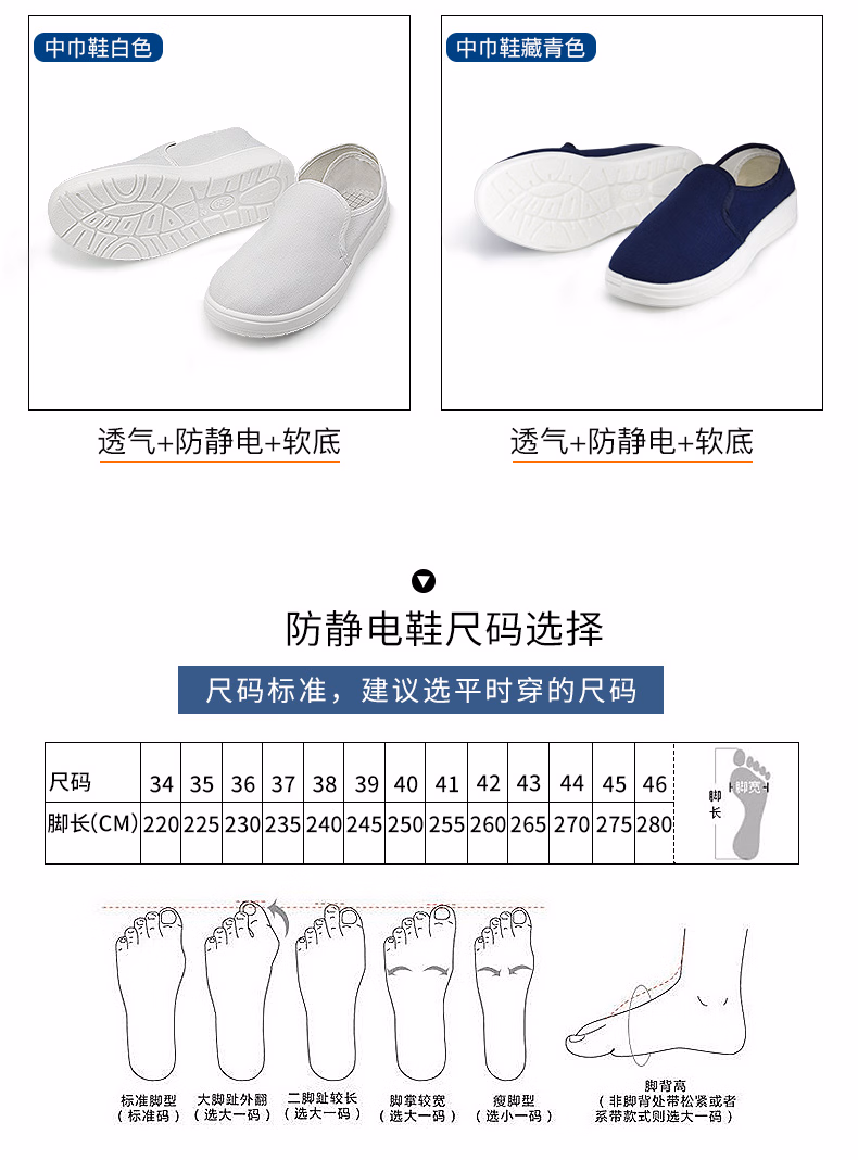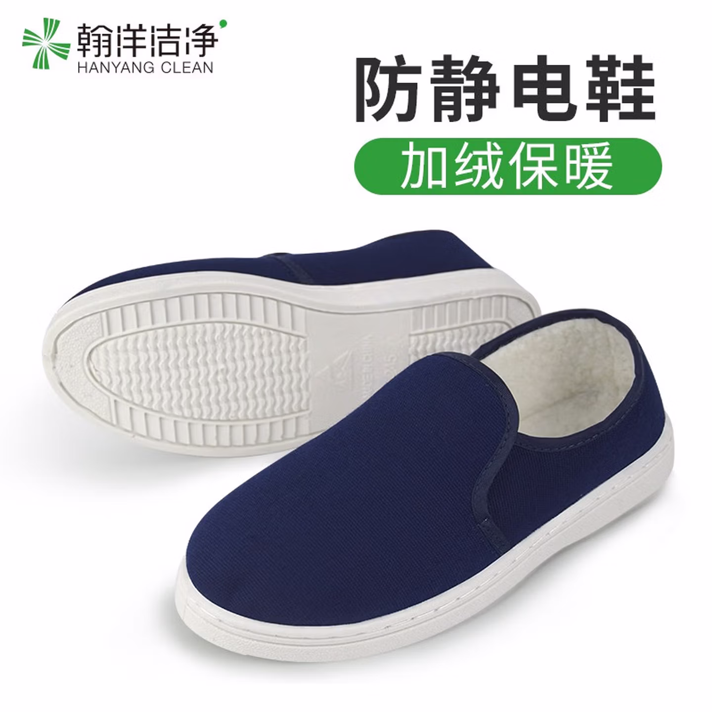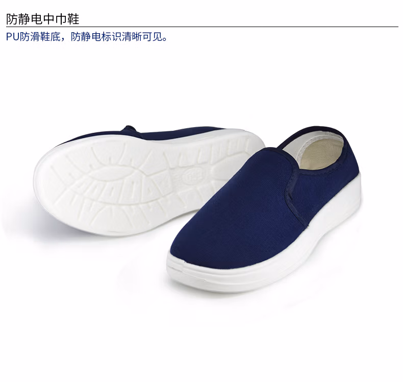> 翰洋洁净(HANYANGCLEAN) 防静电鞋 无尘鞋 洁净鞋 静电鞋 无尘车间工作鞋洁净室小白鞋 防尘鞋 软底加厚劳保鞋 PU底藏青色中巾棉鞋 35