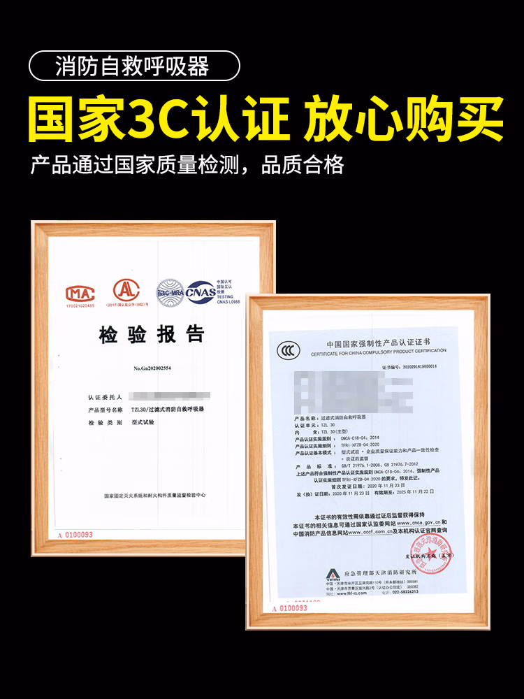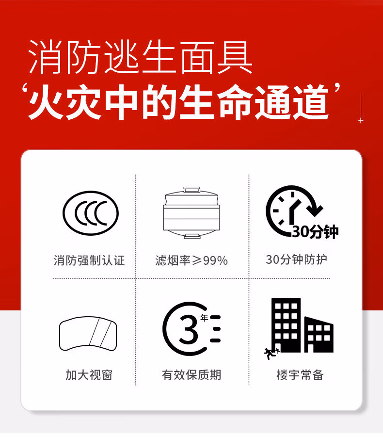 > 消防面具防烟防毒面罩酒店宾馆国标3C认证家用火灾逃生防火TZL30过滤式自救呼吸器 防烟面罩标准款丨国标3C认证