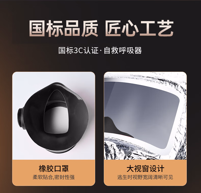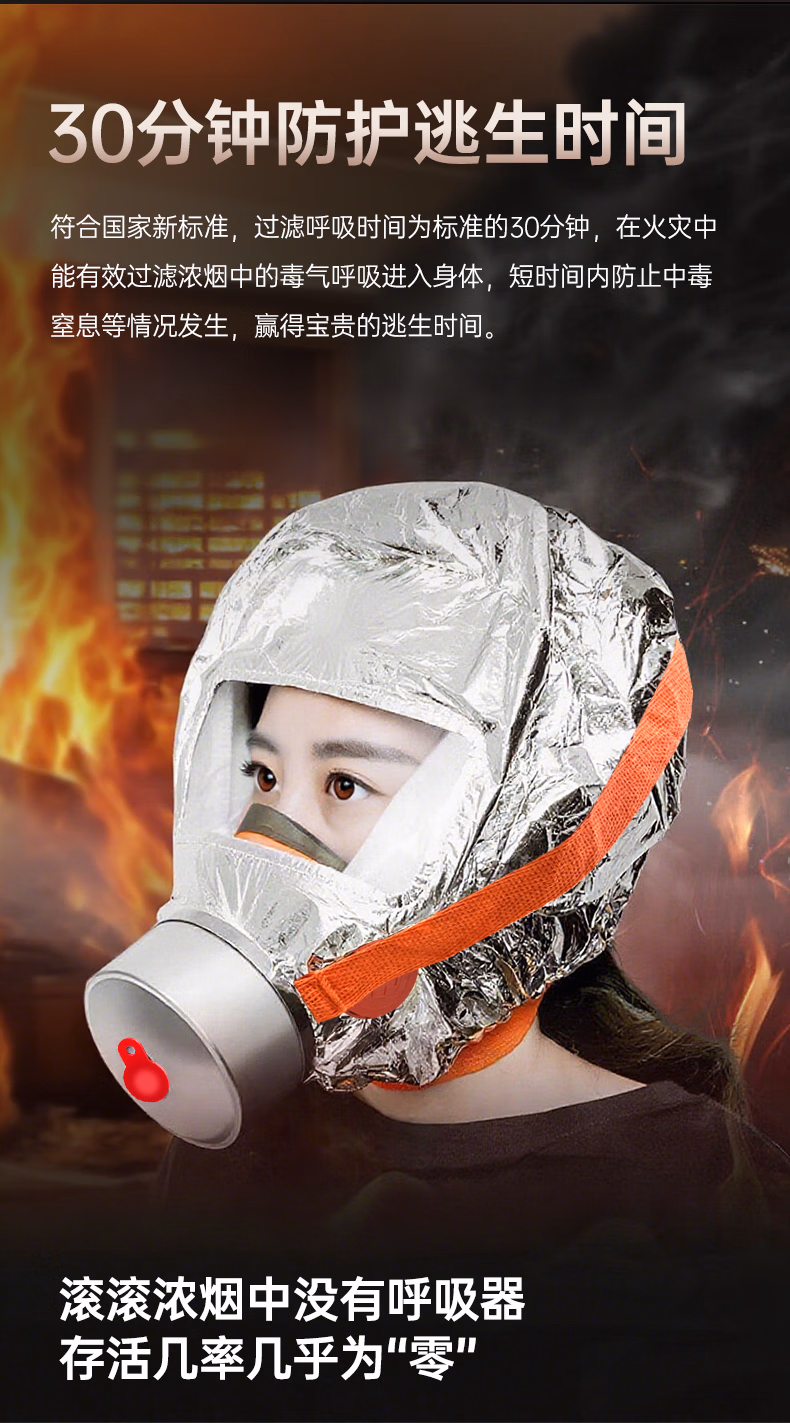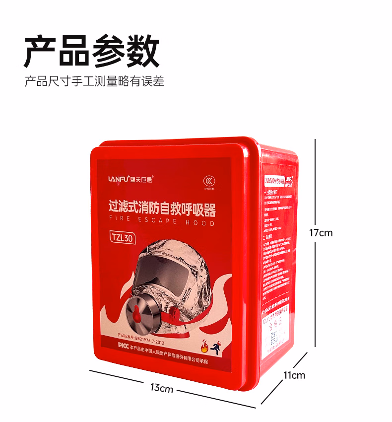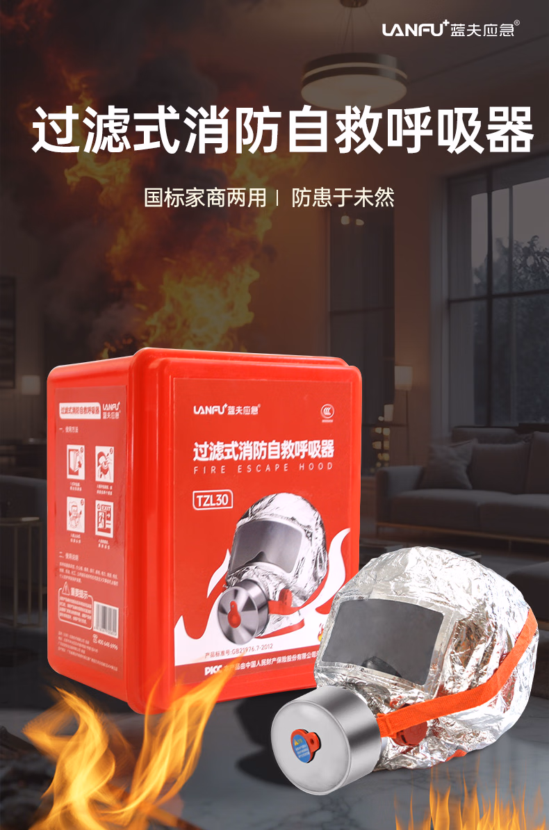> 蓝夫消防面罩防烟面具防毒防火酒店国标3C认证家用火灾逃生自救呼吸器