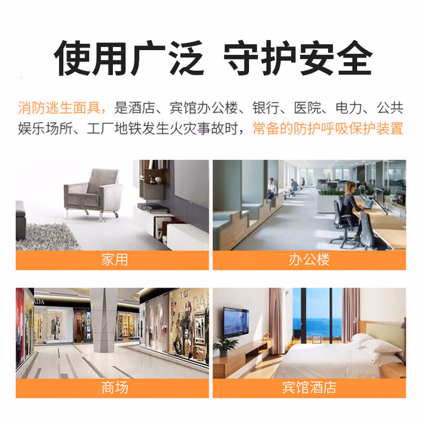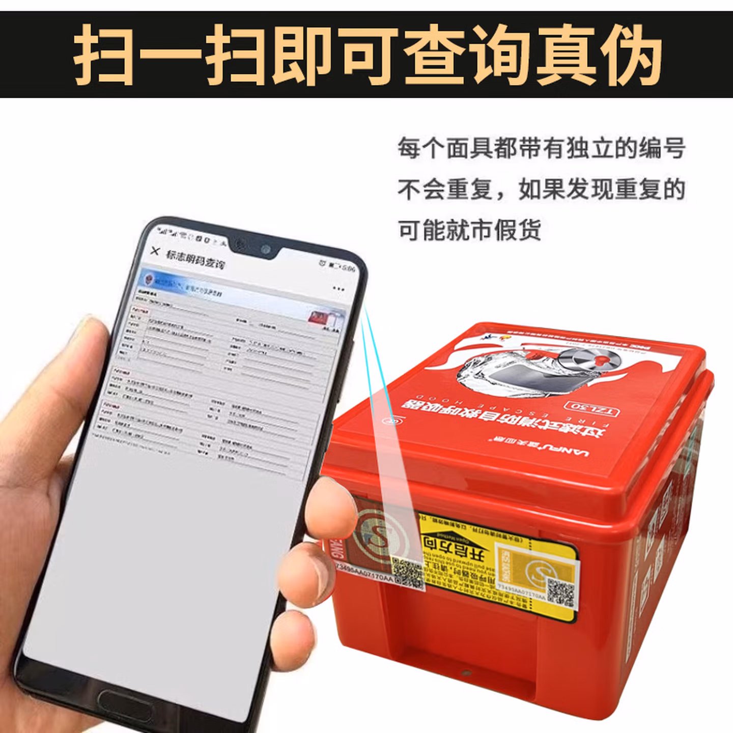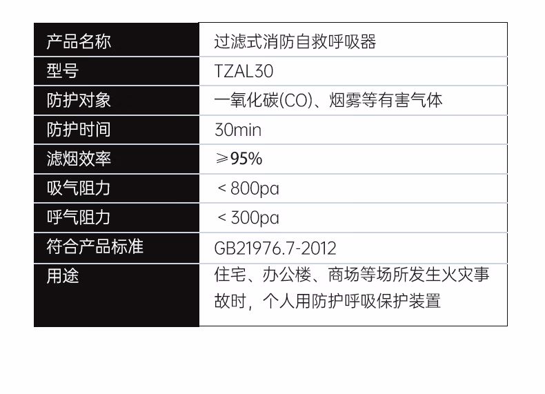 > 蓝夫消防面罩防烟面具防毒防火酒店国标3C认证家用火灾逃生自救呼吸器