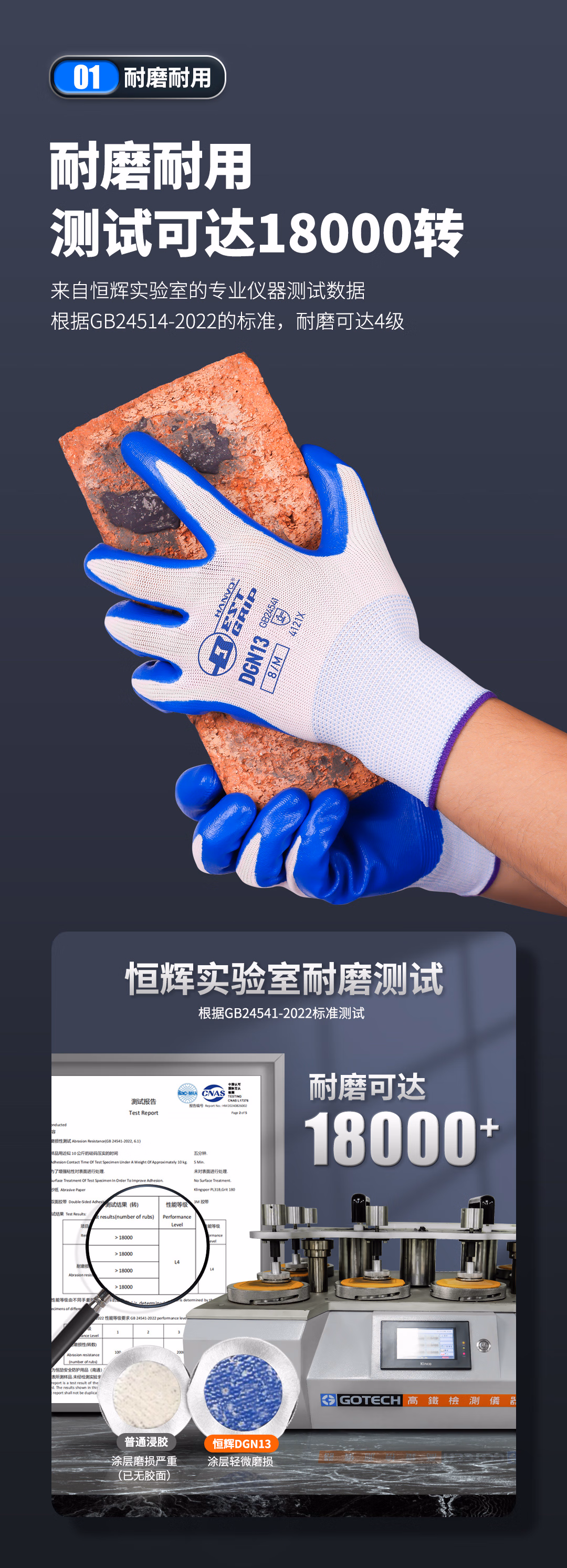 恒辉 浸胶劳保手套 橡胶防滑耐磨透气乳胶 胶皮工地干活搬运工作维修防护手套 DGN29