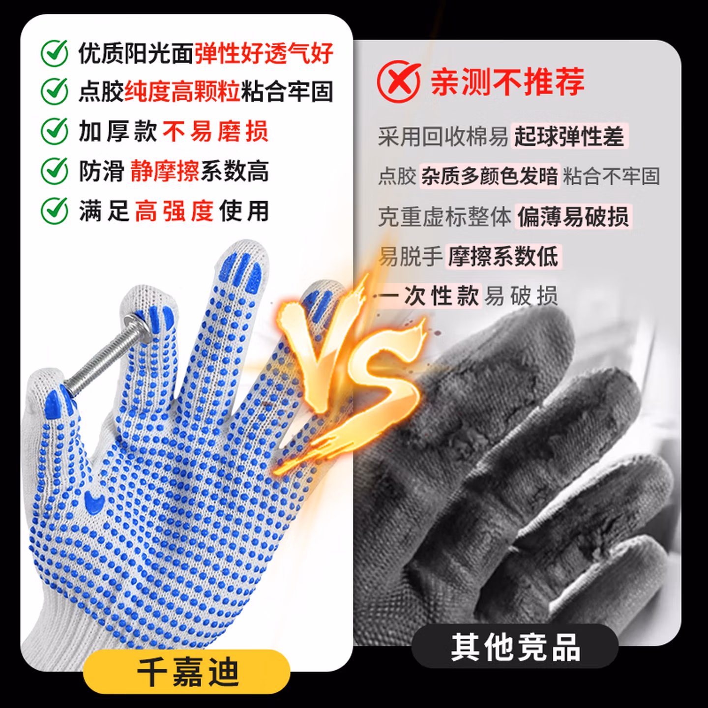 千嘉迪手套工作劳保手套点胶防滑耐磨线手套点珠12双/包 【点胶手套】12双【极速发货】
