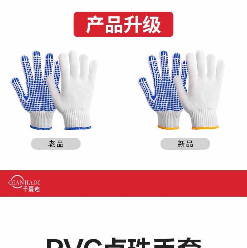 > 千嘉迪手套工作劳保手套点胶防滑耐磨线手套点珠12双/包 【点胶手套】12双【极速发货】