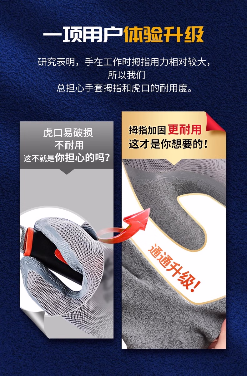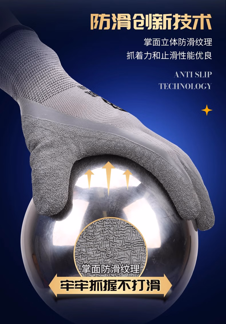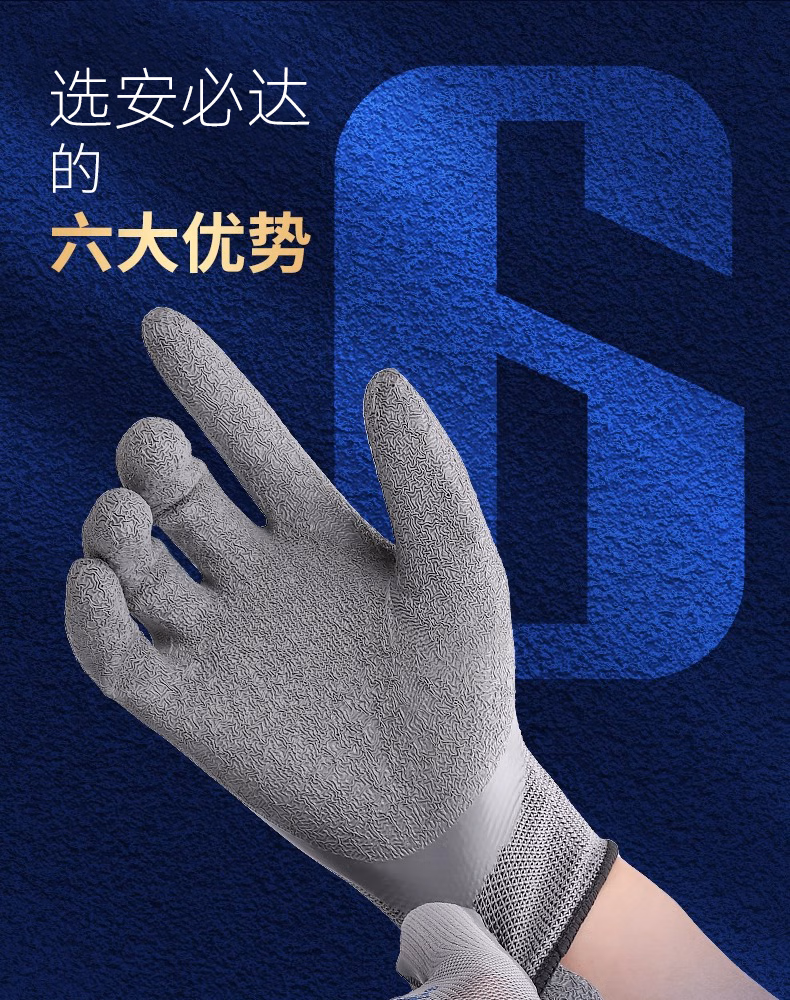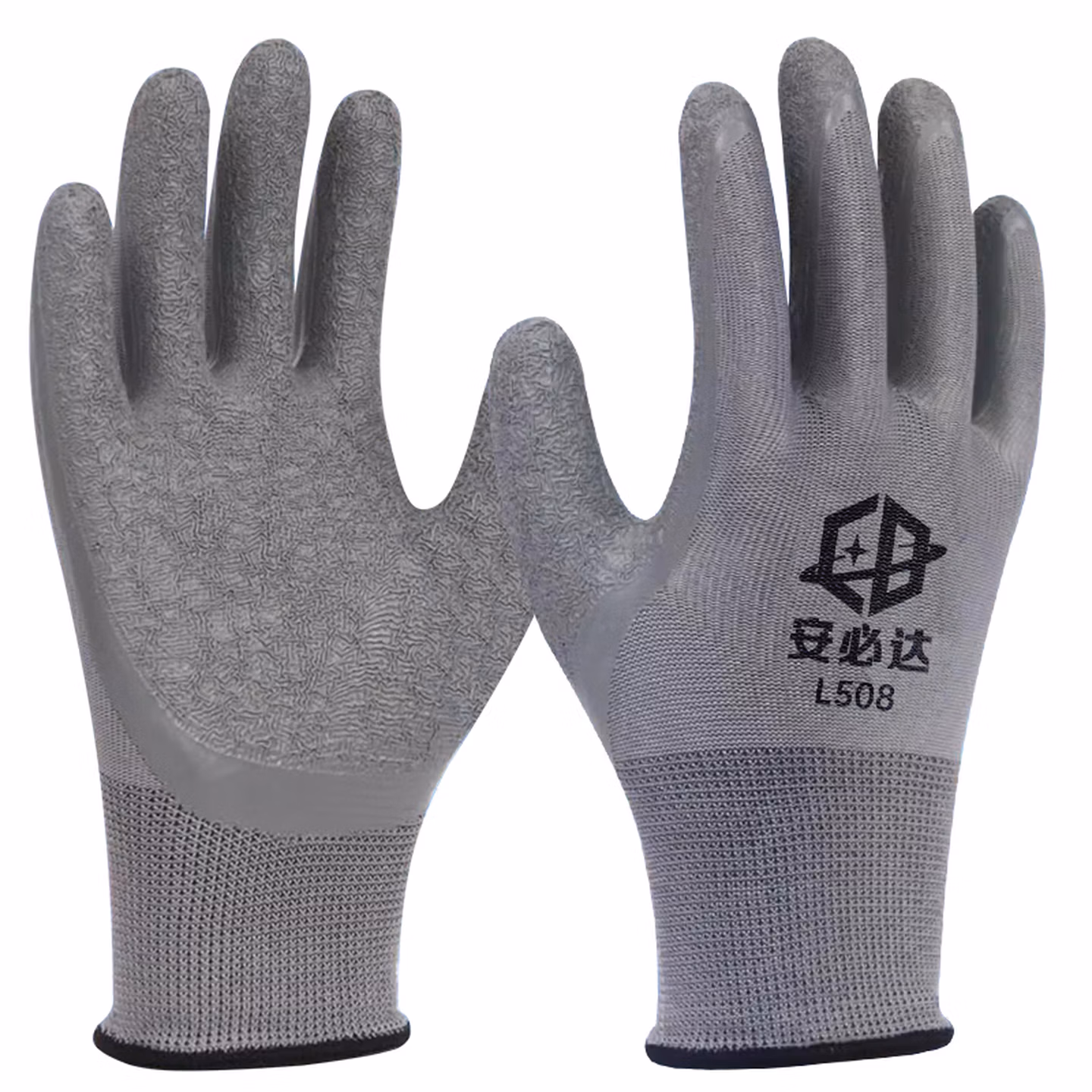 > 安必达乳胶皱纹劳保手套涂胶防滑耐磨橡胶透气工地干活浸胶劳动胶皮手套 安必达L508灰色皱纹【48双】