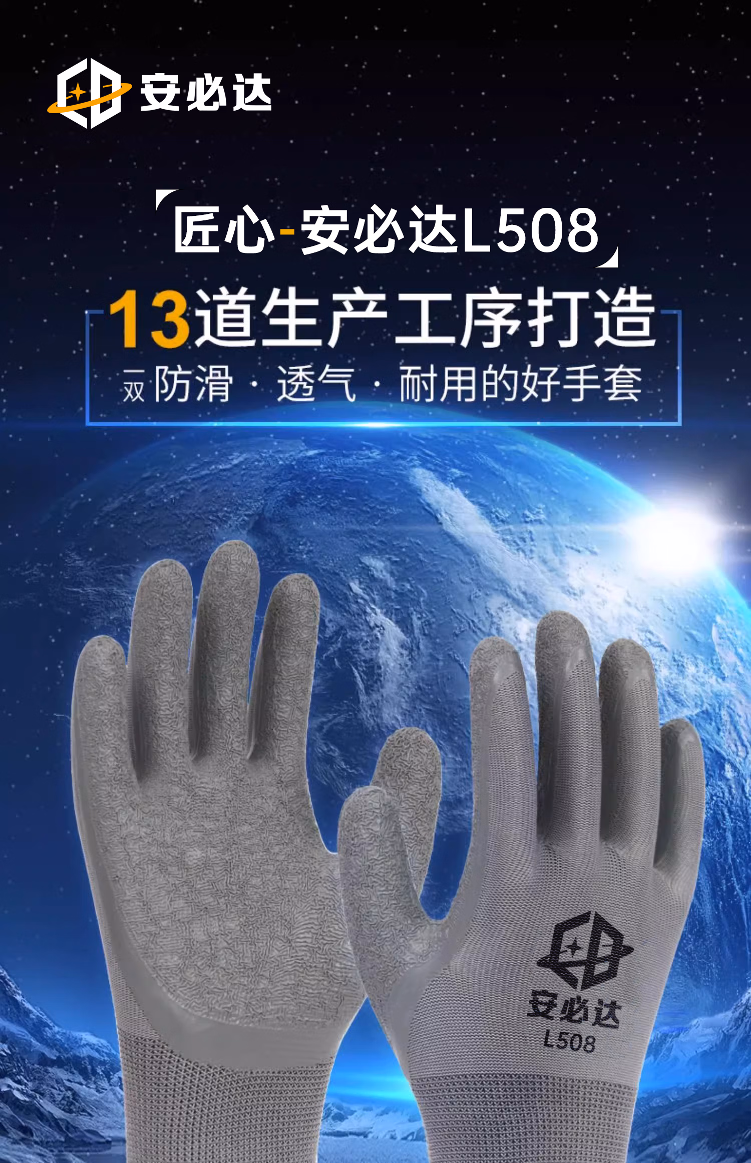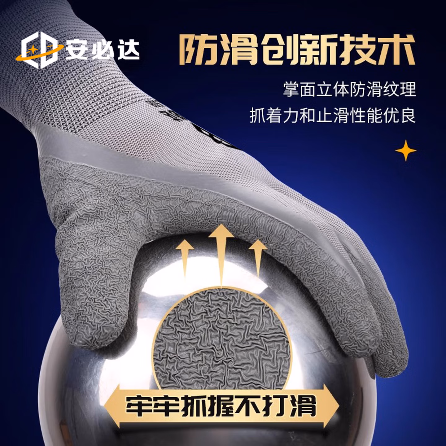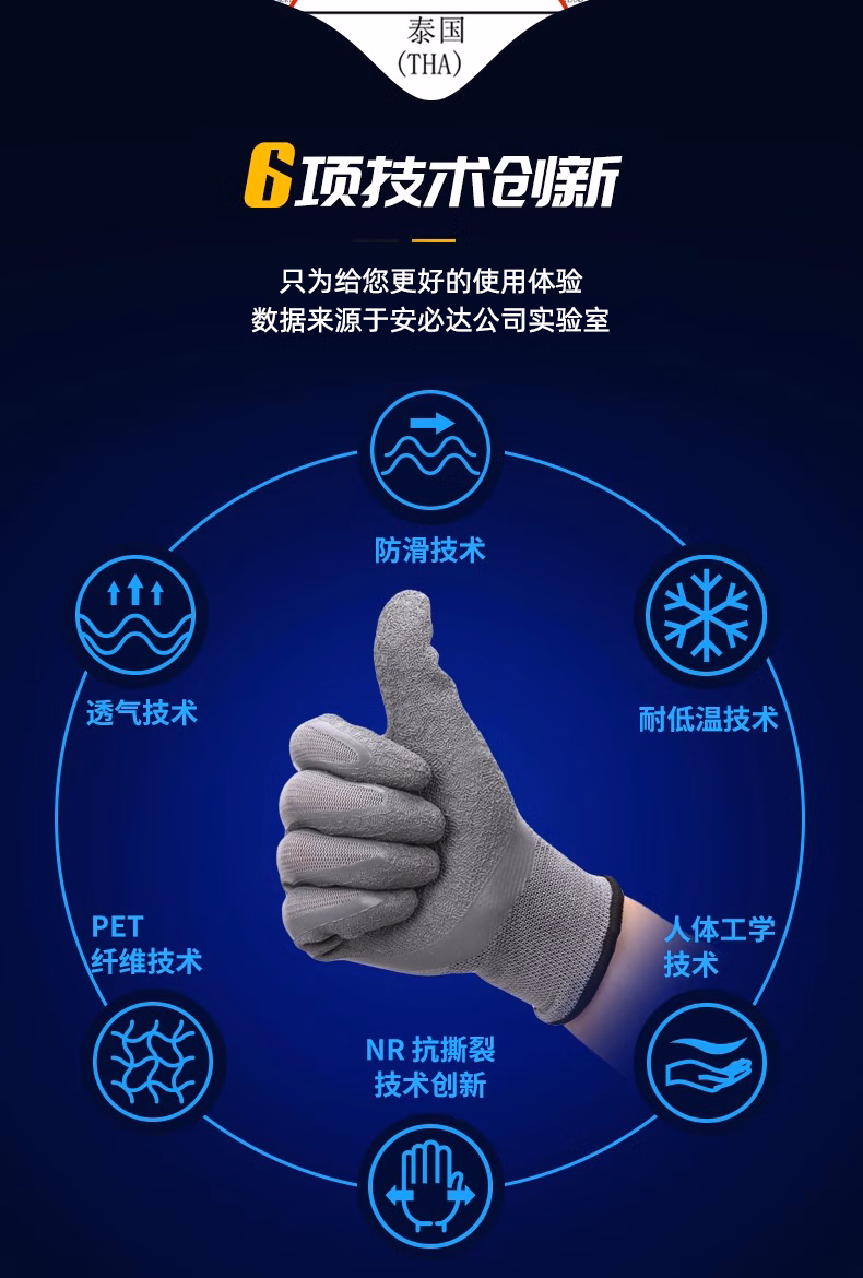 > 安必达乳胶皱纹劳保手套涂胶防滑耐磨橡胶透气工地干活浸胶劳动胶皮手套 安必达L508灰色皱纹【48双】