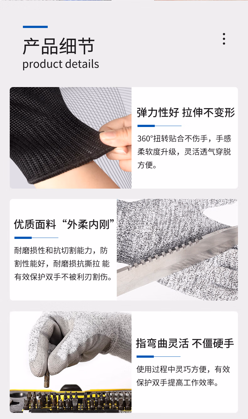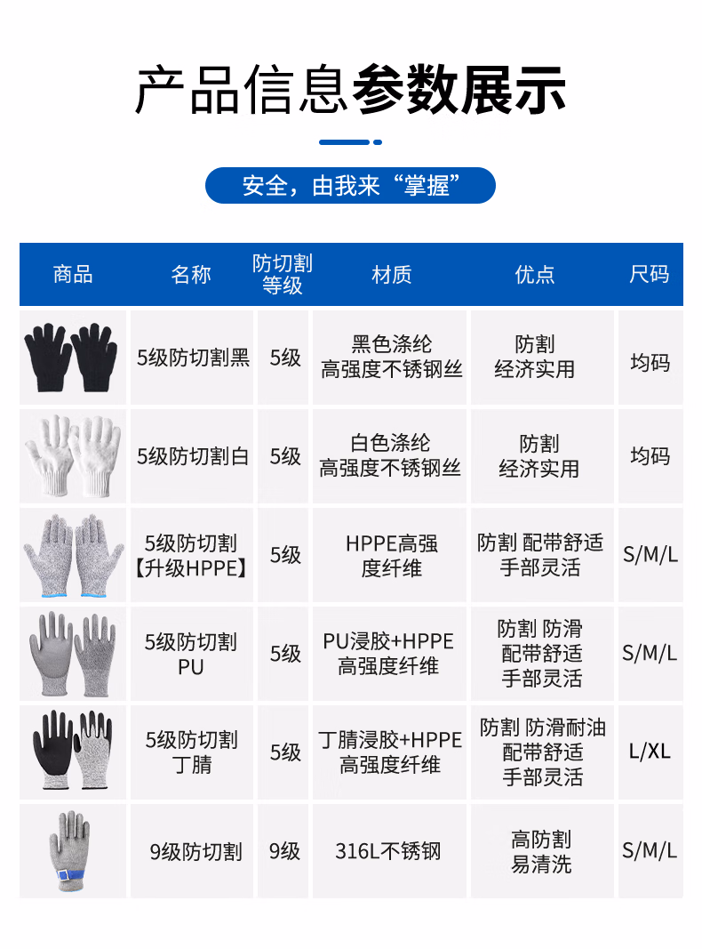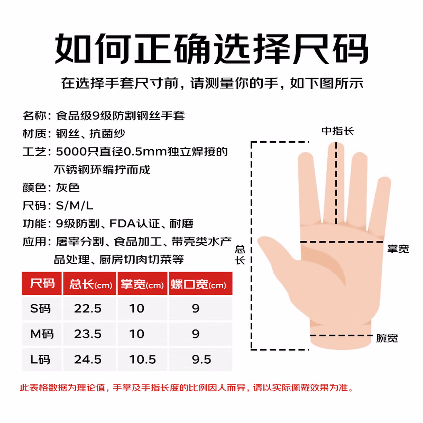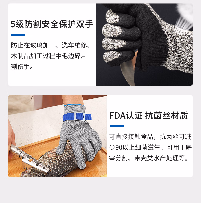 特威强9级防割手套1双/包 316L钢丝防护劳保手套中号M码