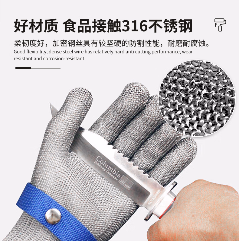 > 特威强9级防割手套1双/包 316L钢丝防护劳保手套中号M码