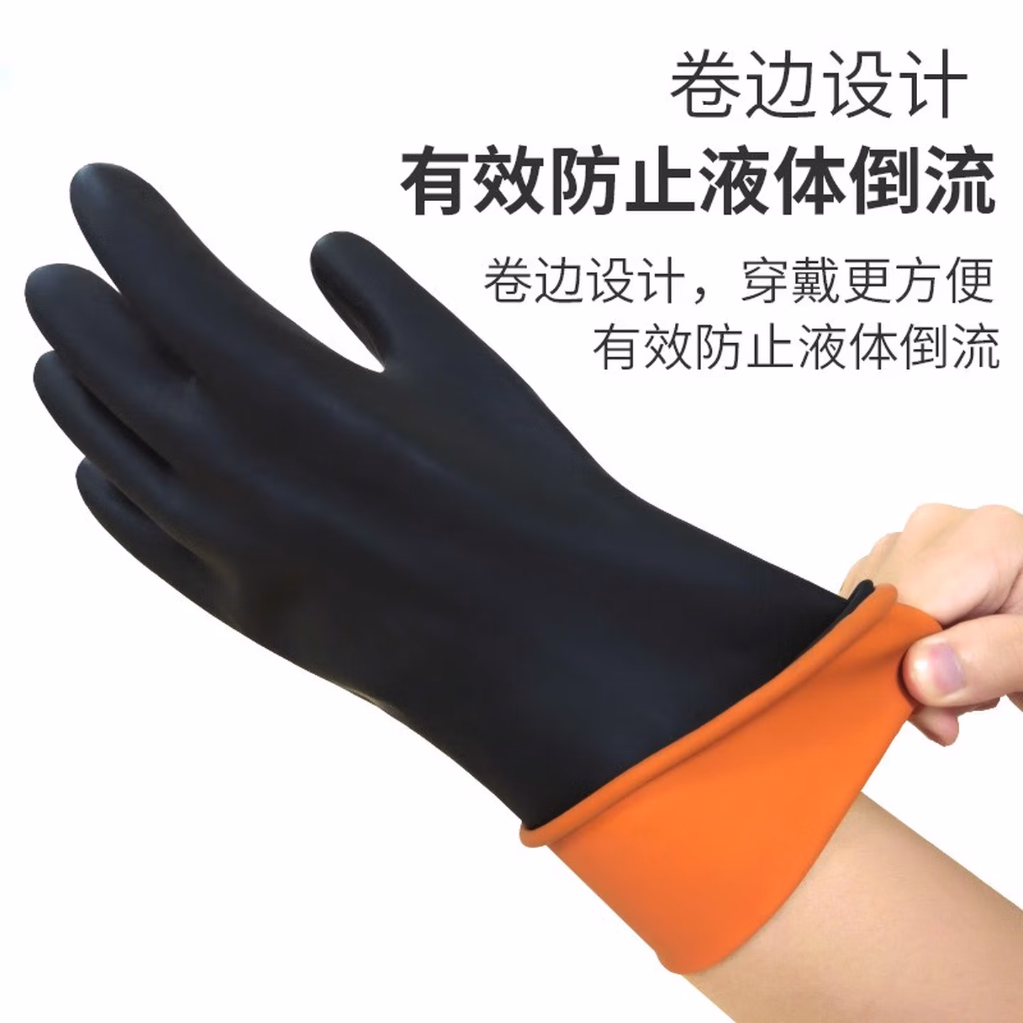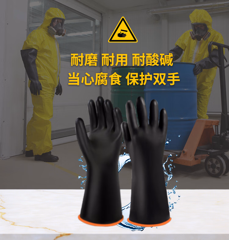 安美尚 (ams) 工业耐酸碱橡胶手套 10双/包 加长加厚防油防化耐腐蚀防护加厚双层胶 A539